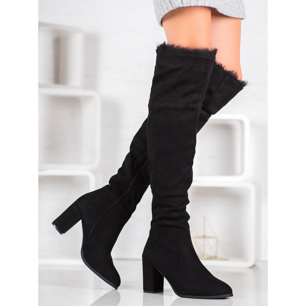 Elegancia en el alma, calidez en la parte superior - SHELOVET Botas de ante con pelo, negro