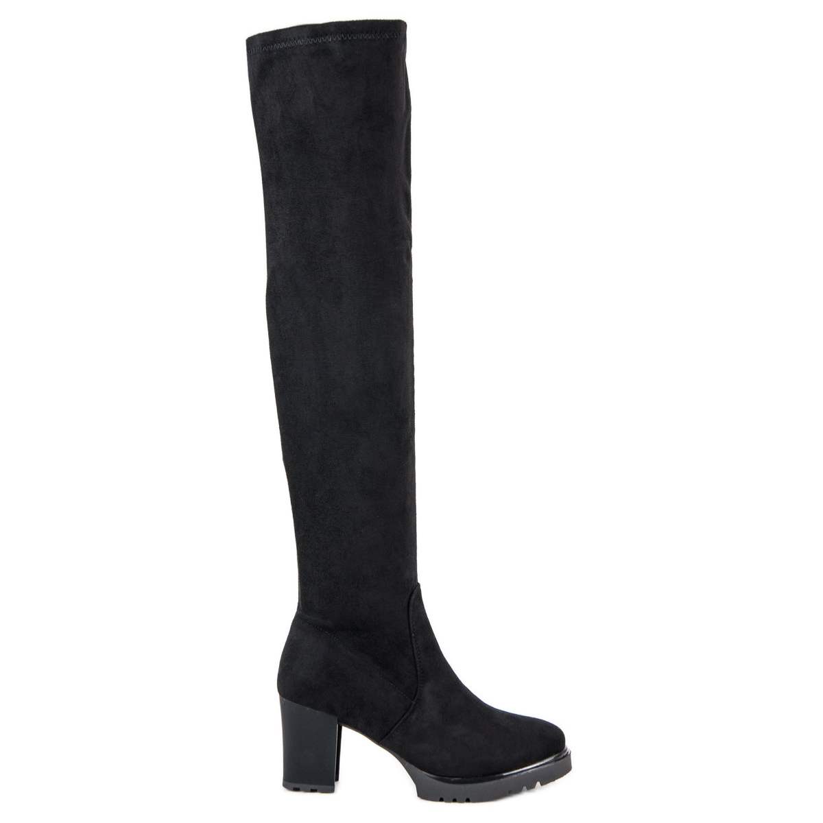 Las botas con plataforma de ante en color negro son una opción perfecta para los días de otoño e invierno. Confeccionados en piel serraje ecológica, combinan elegancia y comodidad de uso. El corte clásico con caña alta hasta la rodilla hace que queden bonitos en la pierna y al mismo tiempo proporcionan la calidez adecuada.