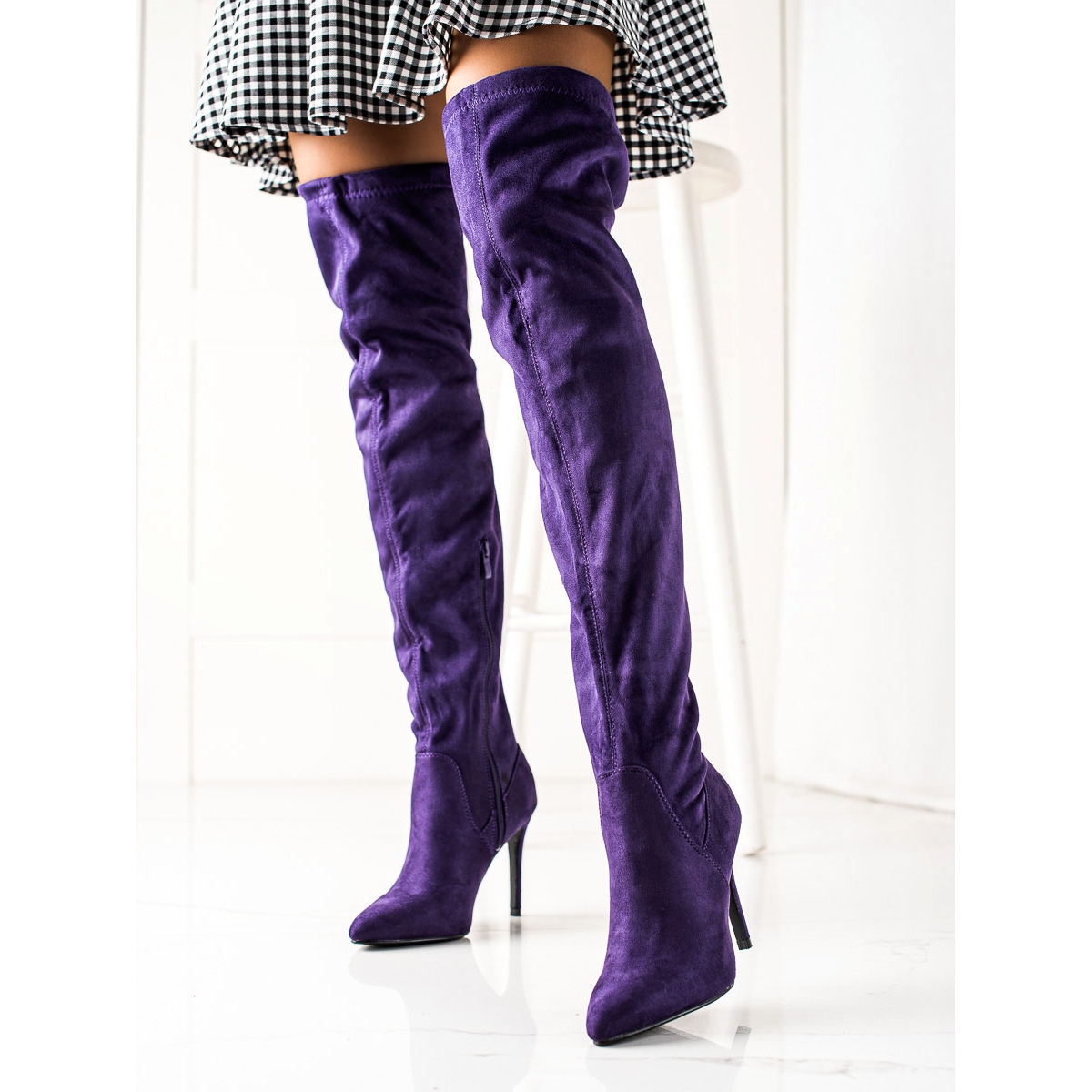 Detalles: Small Swan Botas de ante con tacón alto púrpura