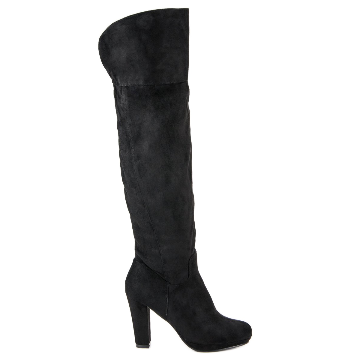 Te presentamos unas botas únicas de tacón alto de ante negro que serán el complemento perfecto para cualquier estilismo otoño-invierno. Confeccionados en ante ecológico de alta calidad, estos elegantes zapatos combinan comodidad y diseño moderno. Gracias a la parte superior alta y enrollable, puedes ajustar su altura a tus necesidades, lo que las hace extremadamente universales.