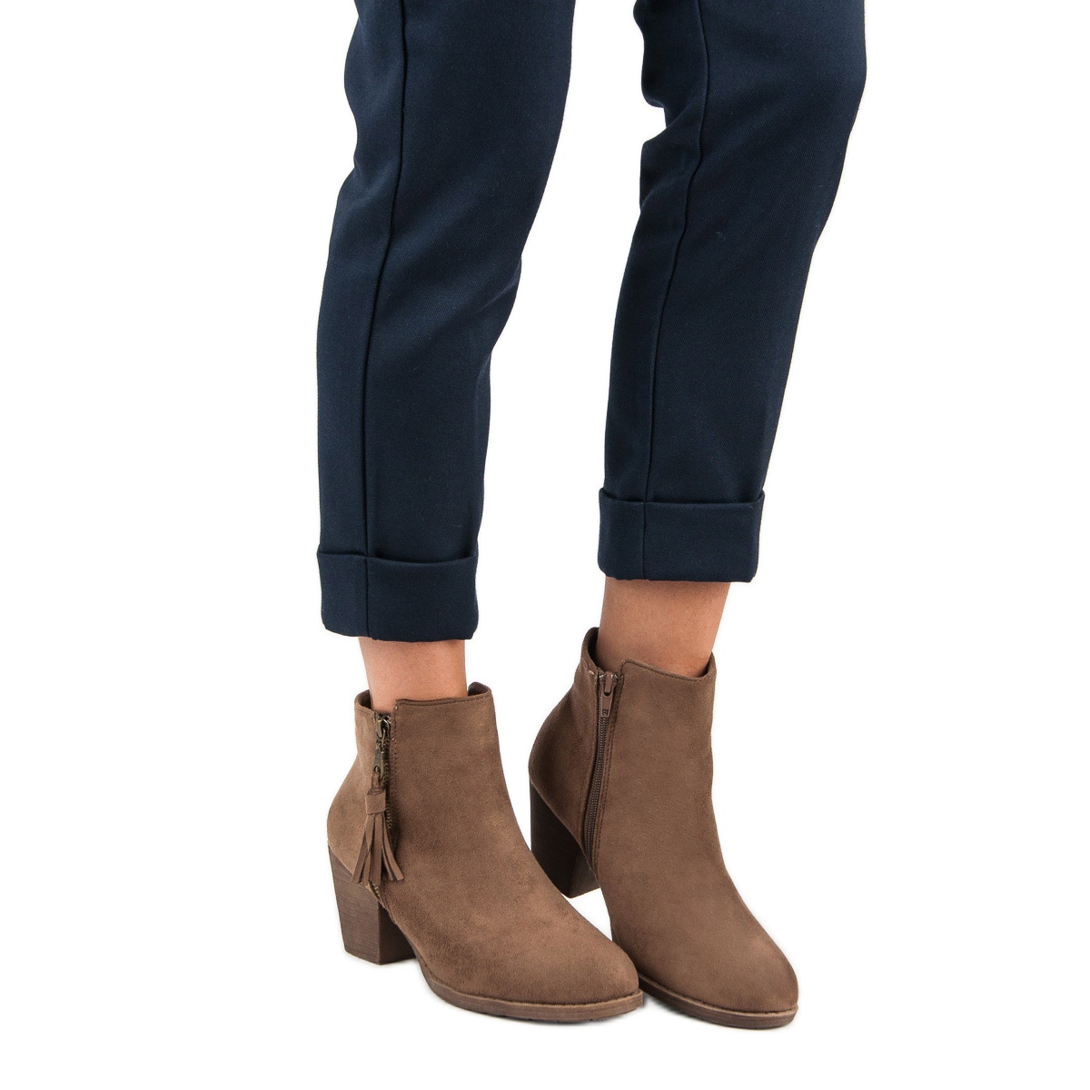 Los botines de ante marrón son la elección perfecta para las mujeres que buscan una combinación de elegancia y estilo cotidiano. Confeccionados en ante ecológico de alta calidad, en los modernos tonos marrón y beige, son un complemento perfecto para cualquier estilismo de otoño e invierno.