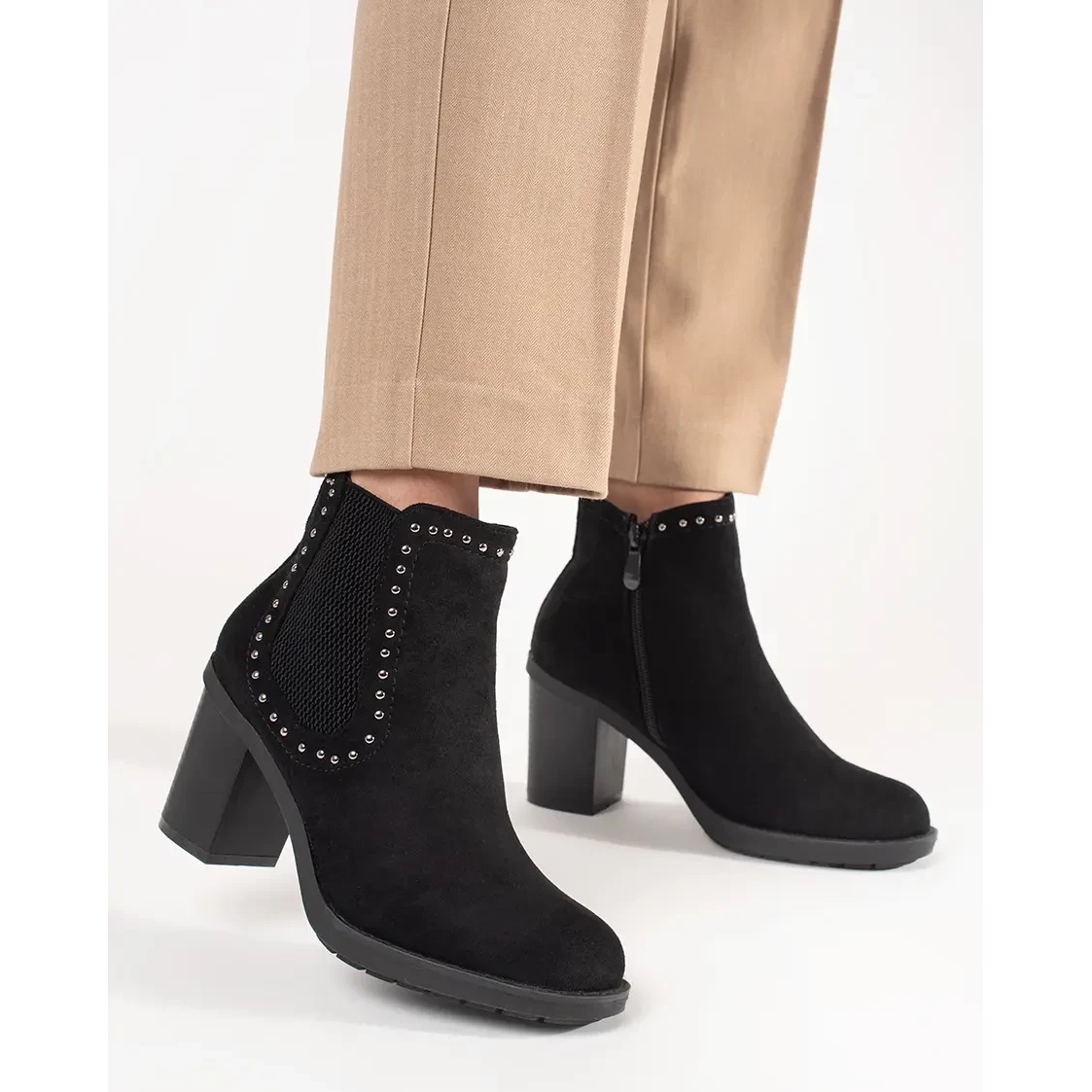 Detalles: Botas de ante negras en la publicación decorada con diamantes de imitación negro