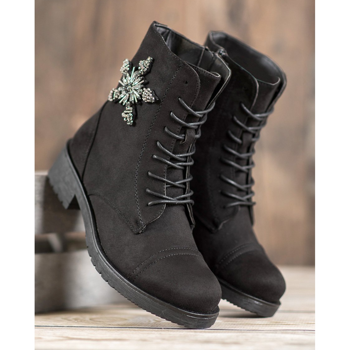 SHELOVET ofrece zapatos que combinan moda con funcionalidad, haciendo que cada mujer se sienta especial con ellos. ¡Elige unos botines de ante negro que se convertirán en un elemento insustituible de tu guardarropa para la temporada otoño/invierno!