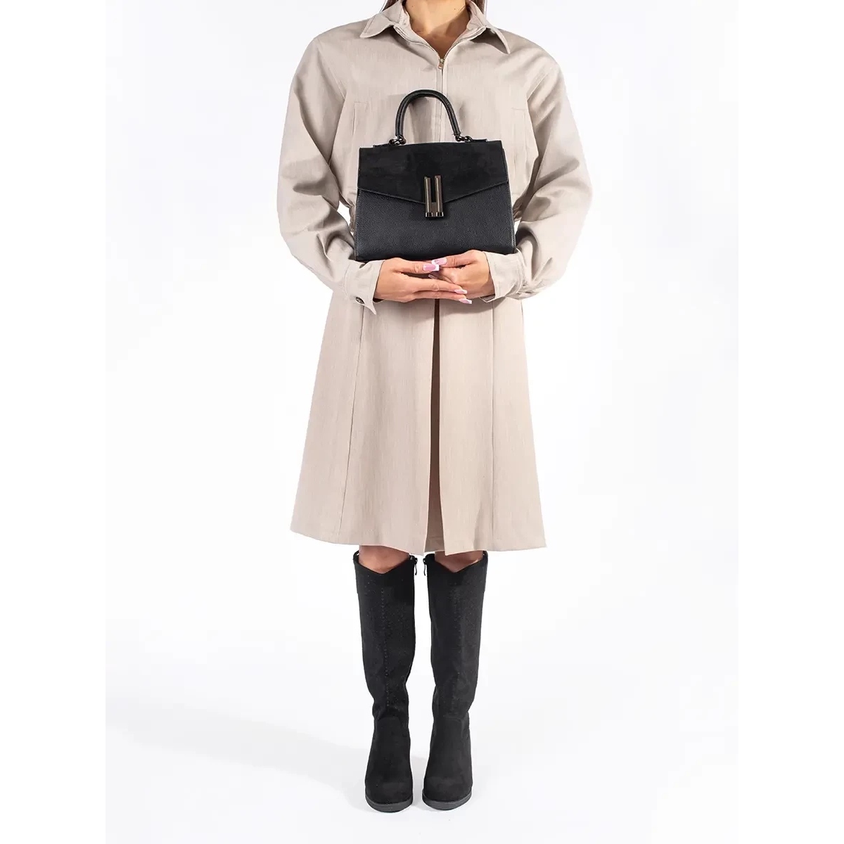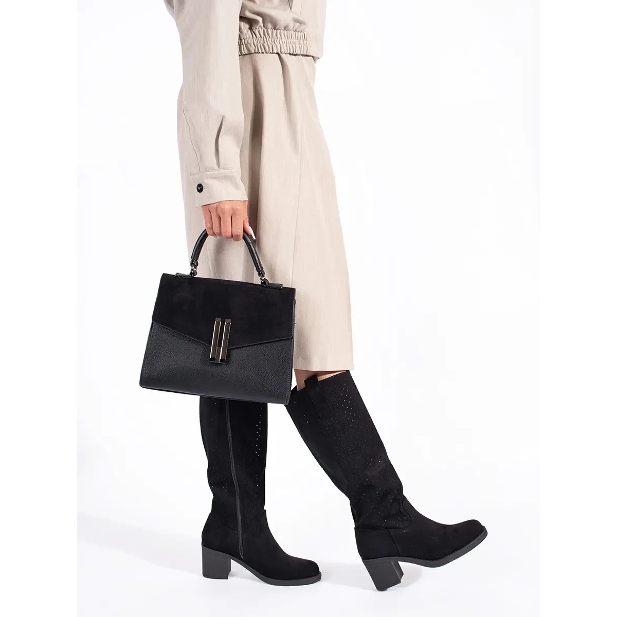 Las botas tienen una parte superior hasta la rodilla y un cómodo tacón en bloque de 6 centímetros, lo que las convierte en una opción perfecta tanto para estilos cotidianos como más formales. La cremallera facilita el calzado y la plantilla de piel ecológica garantiza comodidad durante el uso.