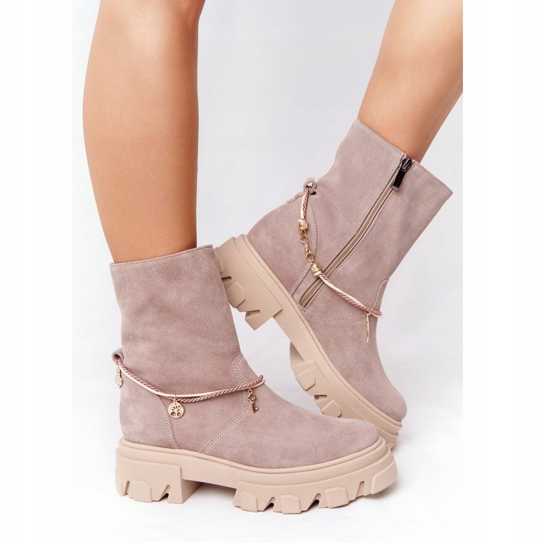 Estas botas están hechas de gamuza suave y natural, lo que garantiza no solo una apariencia estética, sino también comodidad de uso. La plantilla perfilada de cuero se adapta a la forma del pie, proporcionando un soporte adecuado incluso durante todo el día. La suela sintética antideslizante te hace sentir seguro en cada paso, independientemente de las condiciones climáticas.