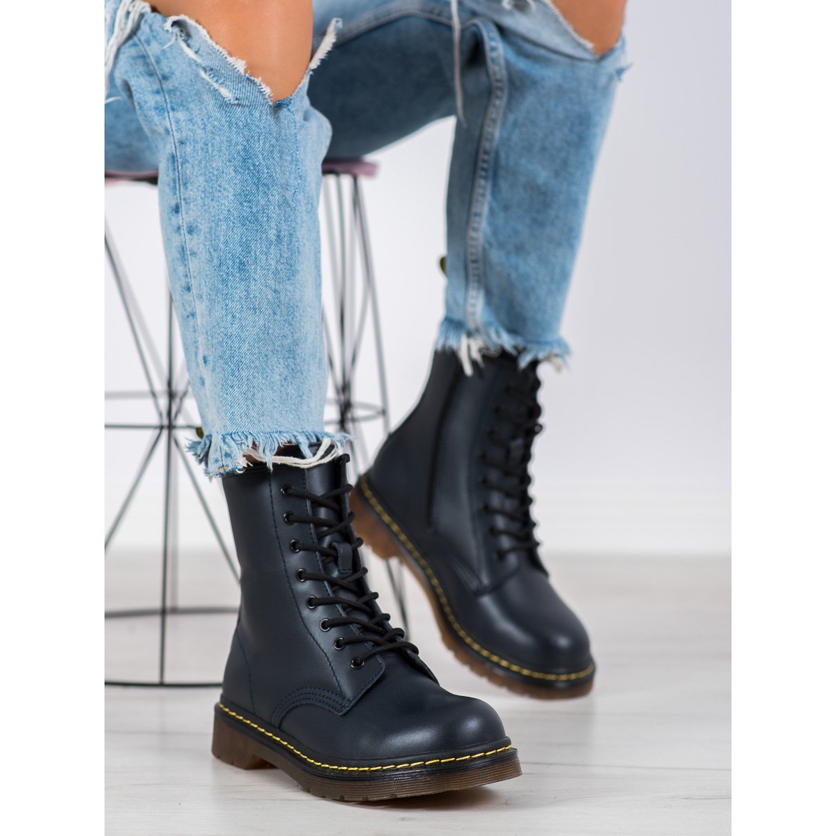 Detalles: Botas de combate de cuero con cremallera MCKEY azul marino
