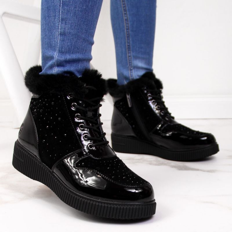 Rieker Botas de cuero con aislamiento en la plataforma Rieker W 93312, negro