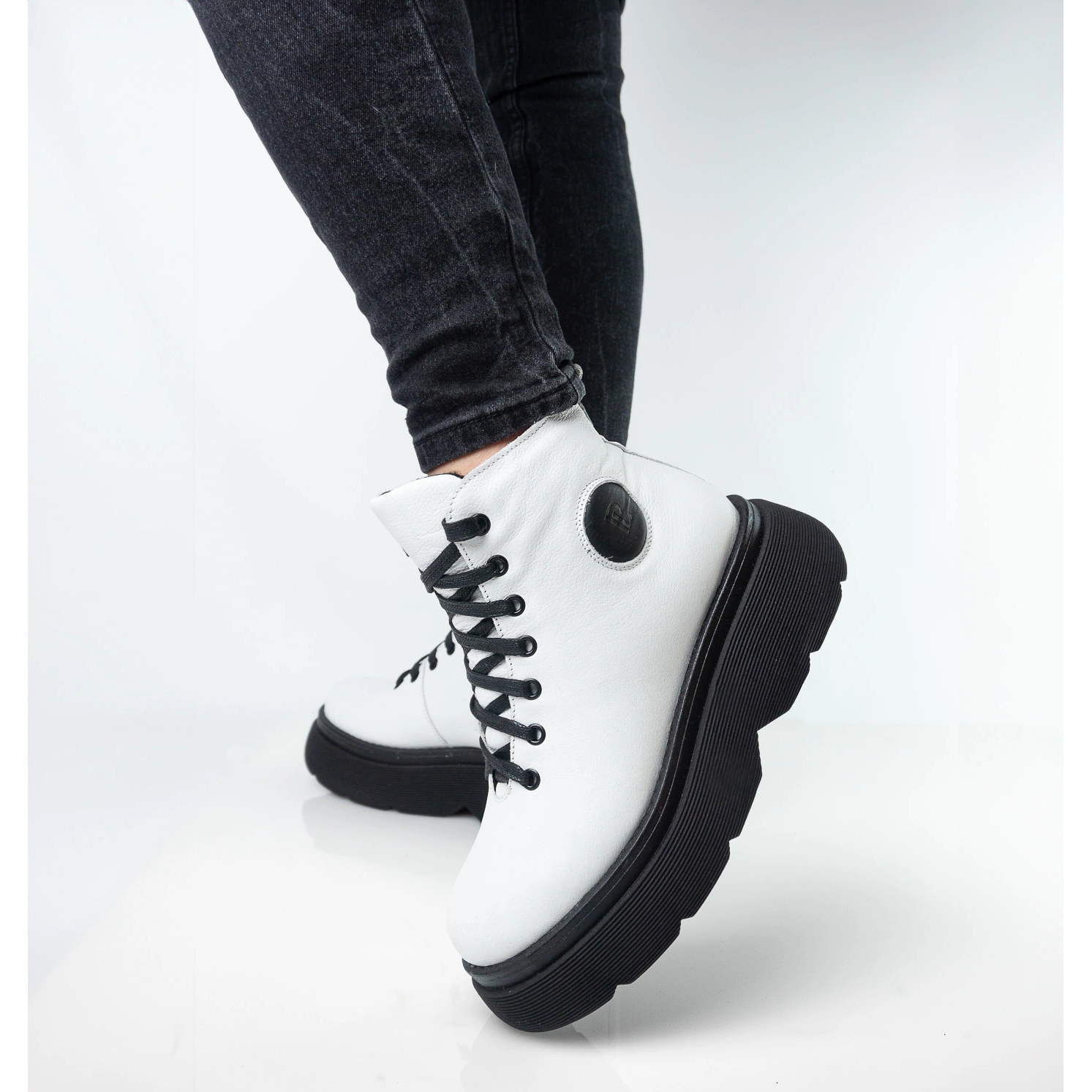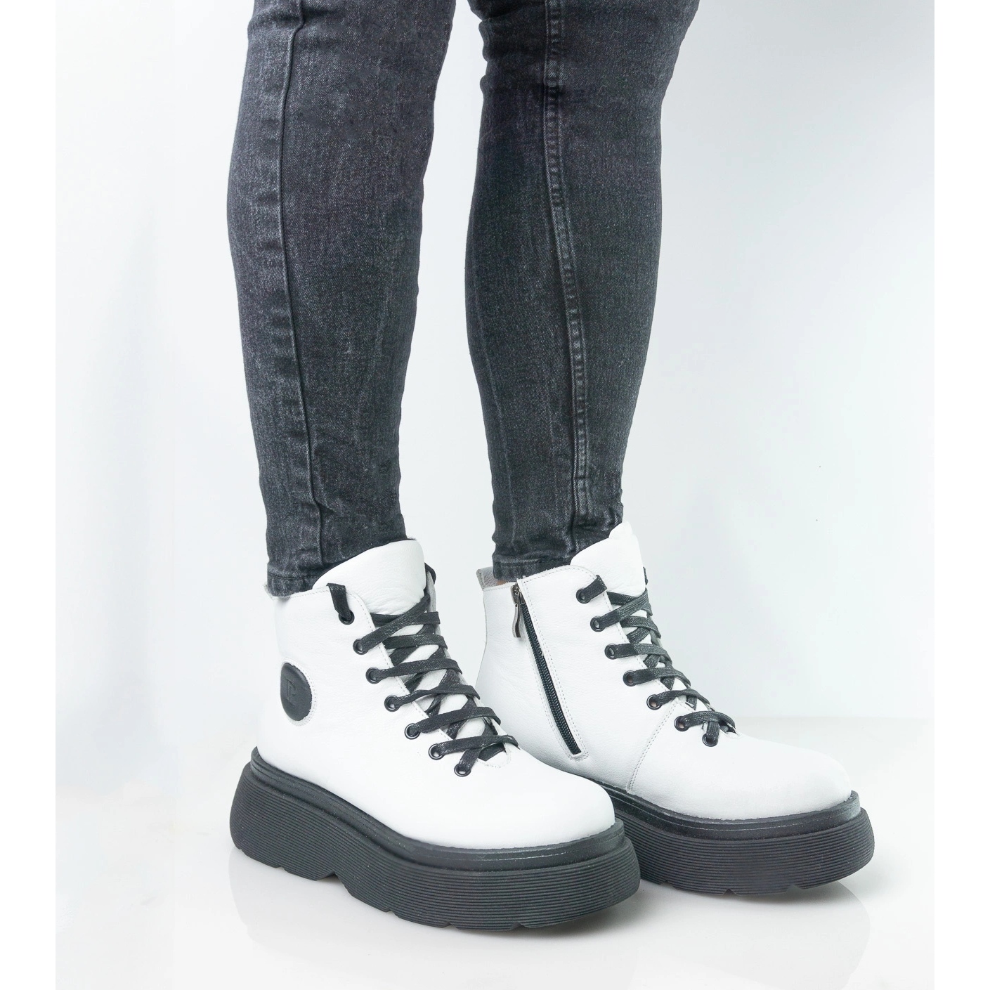 KOMODO KOMODO Botas de cuero para mujeres en el grueso suela Pollonus White 5-1567-004 blanco