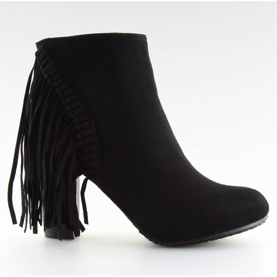 Botas de mujer en tacón ancho, confeccionadas en suave gamuza ecológica. La parte posterior de los zapatos adornados con borlas cosidas en diagonal, lo que le da un efecto único: se ven fenomenales en la pierna. En el interior, tienen una cremallera para facilitar la colocación. Están completamente forrados con un pelaje delicado. Altura del tacón: 8,5 cm.