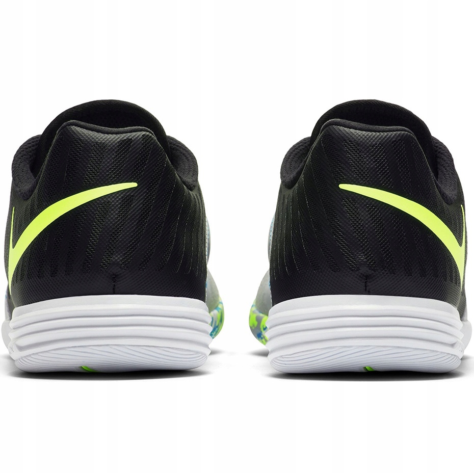 Los zapatos de fútbol Nike son de la serie LunarGato. Están diseñados para jugar en una superficie interior dura (pasillo). La parte superior está hecha de materiales sintéticos y cuero natural. La parte delantera del zapato está acolchada. Paneles de ventilación. Zapatos de perfil bajo. Plantilla contorneada. Una suela especializada garantiza la tracción. La espuma Lunarlon proporciona una buena absorción de impactos. Nivel: aficionado.