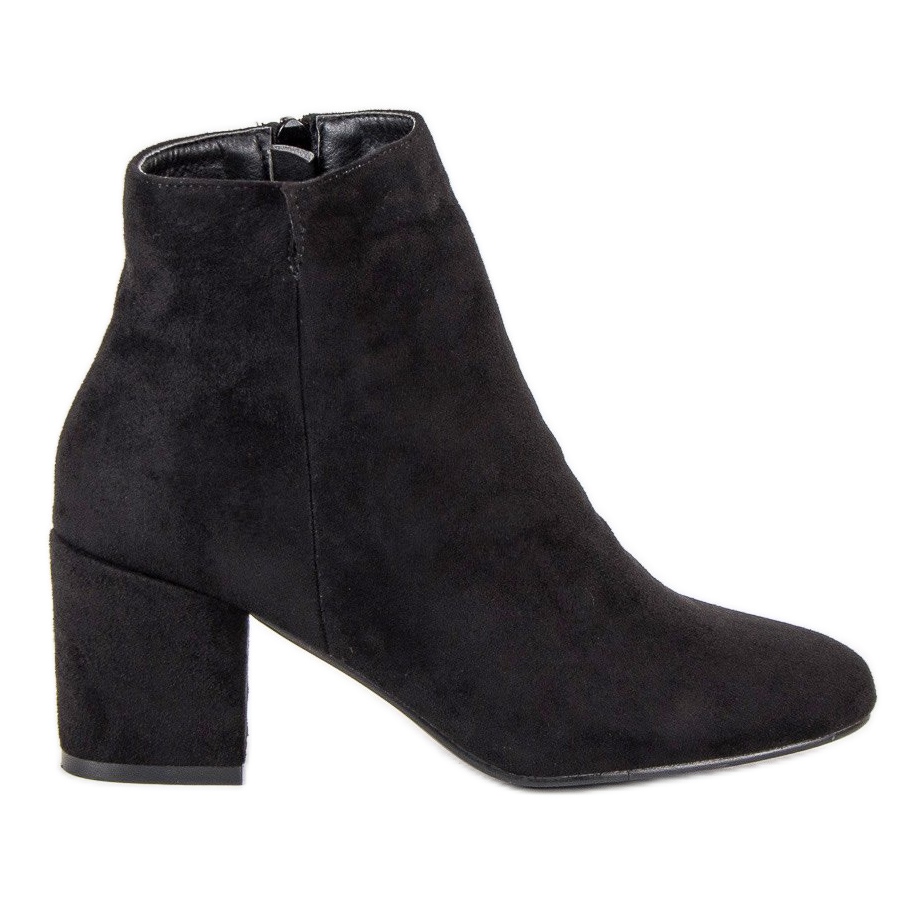 Presentamos unos botines clásicos de ante negro de la marca Nio Nio, que combinan elegancia con la comodidad del día a día. Hechos de gamuza ecológica, estos elegantes zapatos no solo tienen un aspecto único, sino que también son respetuosos con el medio ambiente. Un tacón en bloque de 6,5 cm de altura garantiza estabilidad y comodidad en cada paso, lo que los convierte en una opción ideal para los días de otoño e invierno.