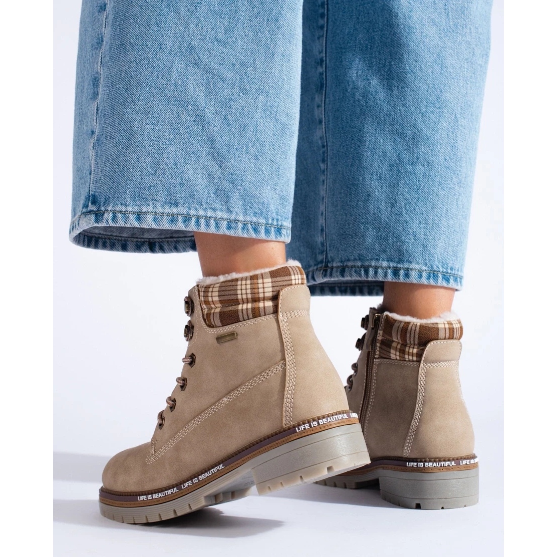 Detalles: Botas de montaña Shelovet beige para mujer fabricadas en piel ecológica marrón