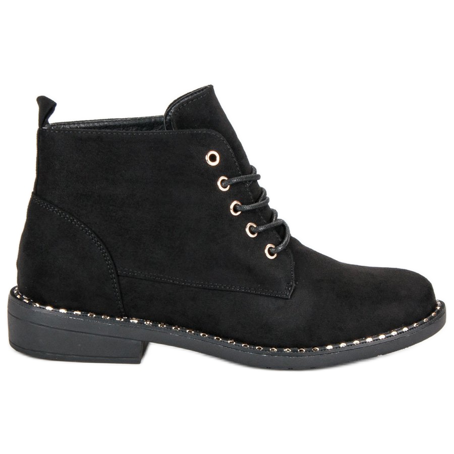 Te presentamos unos botines de mujer elegantes y cómodos de la reconocida marca Sergio Todzi. El modelo está fabricado en ante ecológico negro, lo que lo hace respetuoso con el medio ambiente y al mismo tiempo extremadamente elegante. Estos botines con cordones encajan perfectamente en el estilo casual y clásico, perfectos para todas las mujeres, independientemente de su edad.