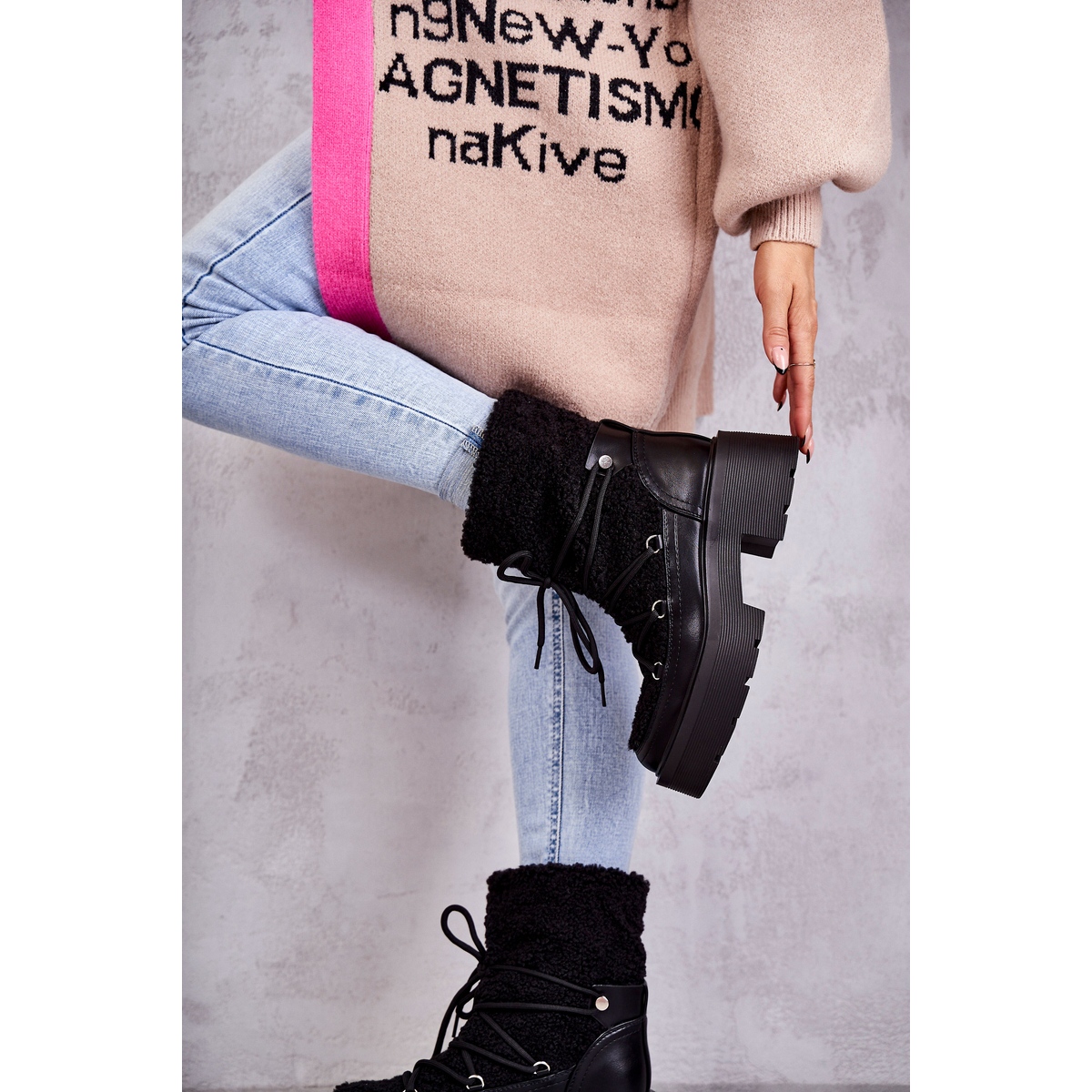 Inna marka Botas de mujer C-275 botas de nieve con piel de oveja, negro