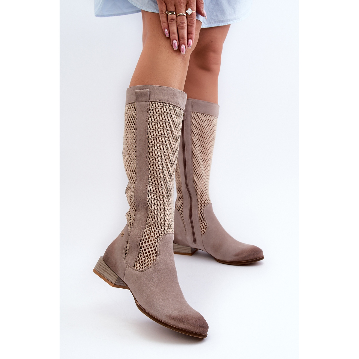 Detalles: Botas De Mujer Caladas Con Tacón Bajo Confeccionadas En Ante Natural Maciejka 06467-04 Beige