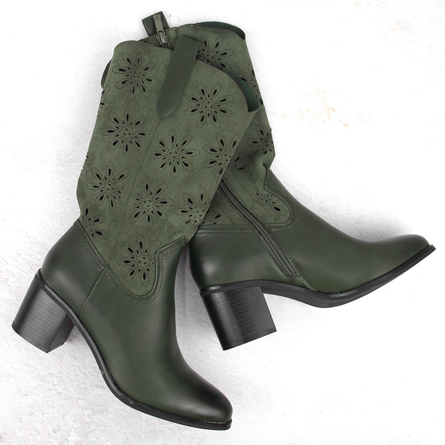 Detalles: Botas de mujer de ante calado verde Jezzi RMR2337-11