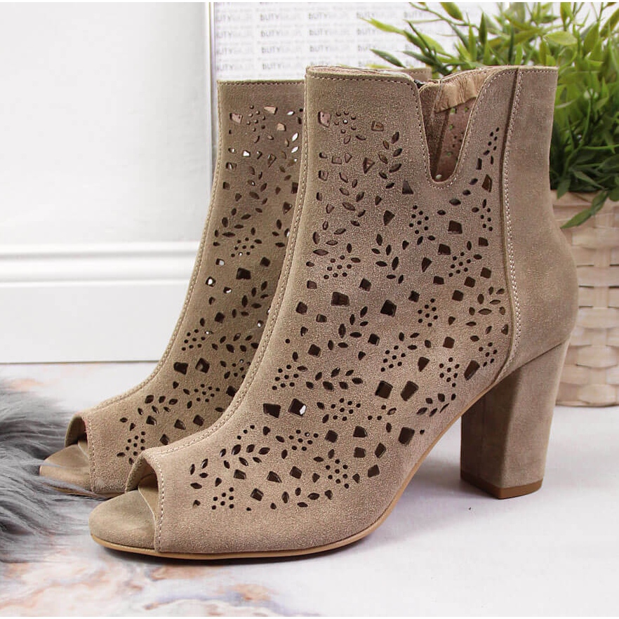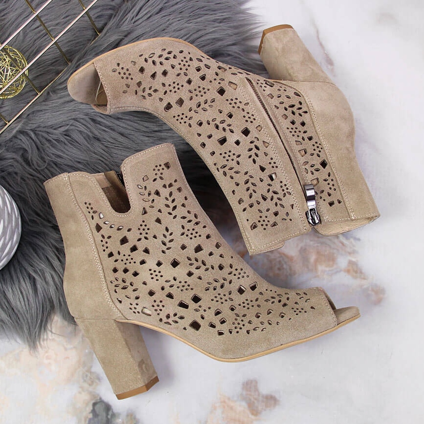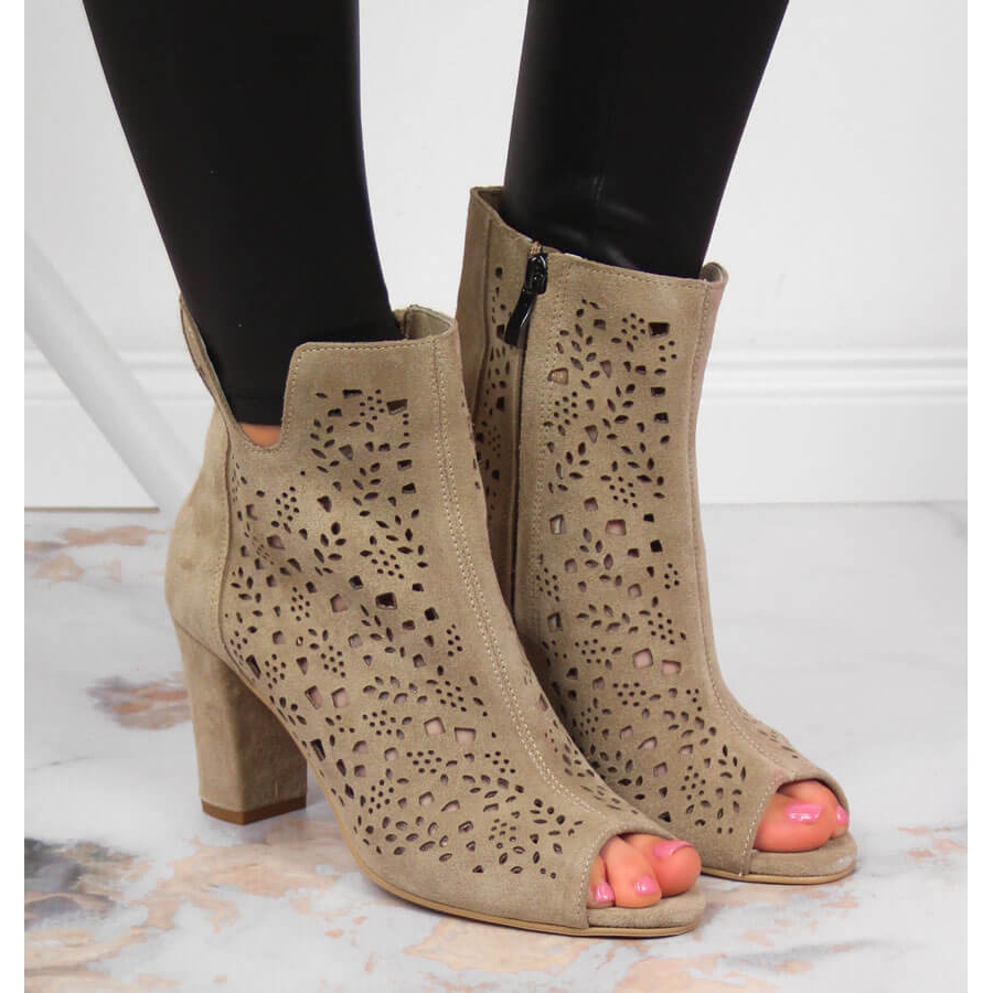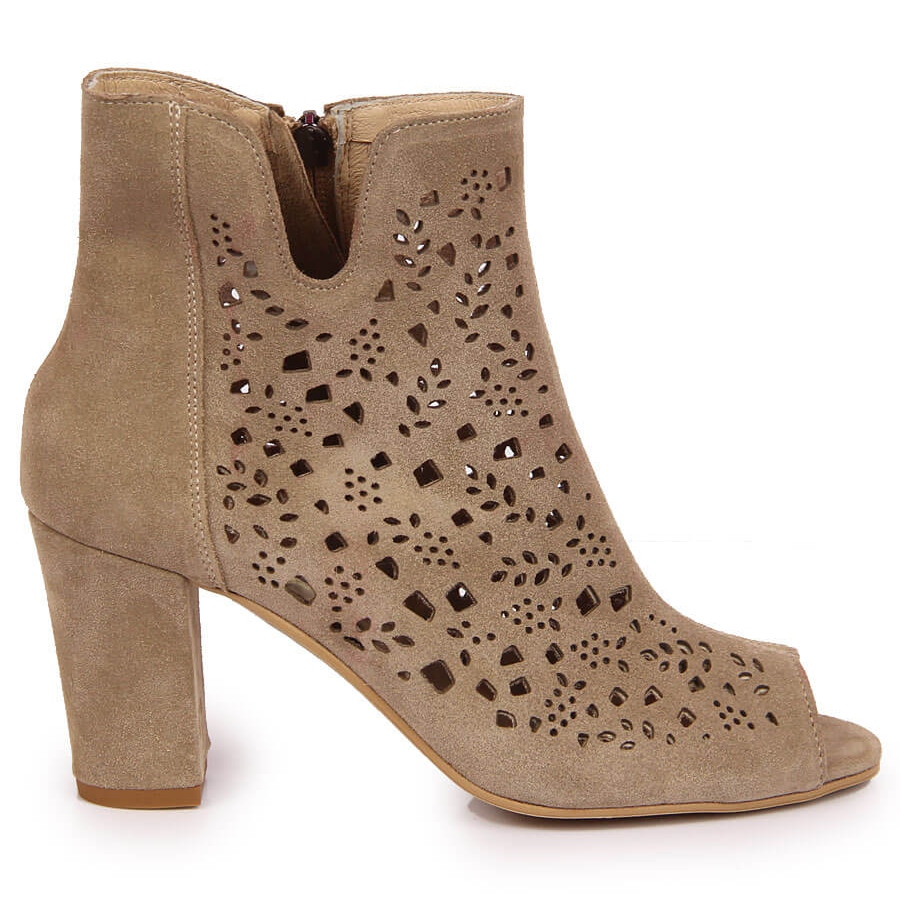 Juma Botas de mujer de cuero calado en el poste Juma beige.
