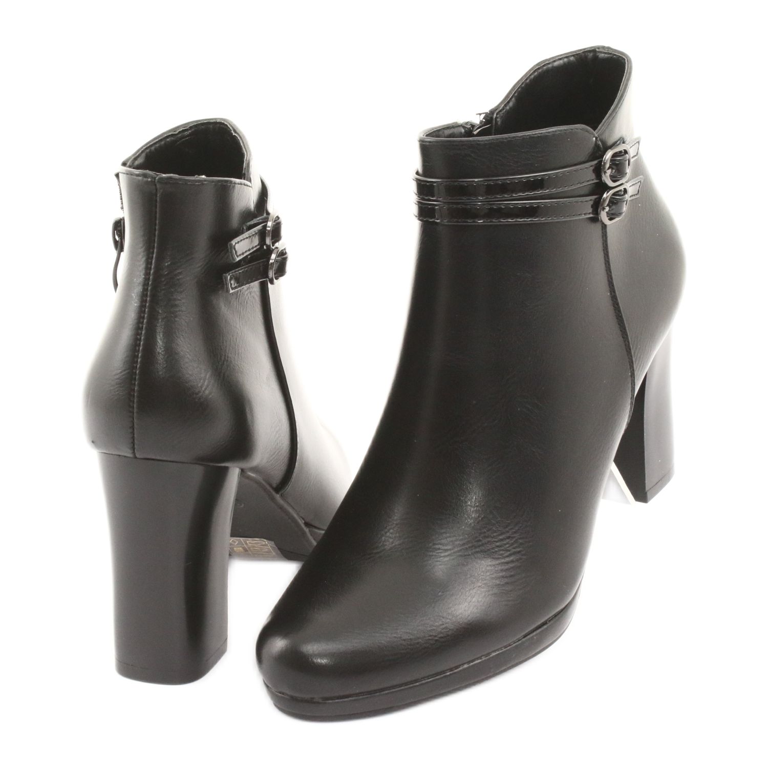 Los botines de mujer de tacón alto de la reconocida marca M.Daszyński son una propuesta ideal para las mujeres que valoran la elegancia combinada con la comodidad. Confeccionados en piel ecológica, las correas brillantes les dan un carácter único y el clásico color negro los hace perfectos para muchos estilos, tanto para el día a día como para ocasiones especiales.
