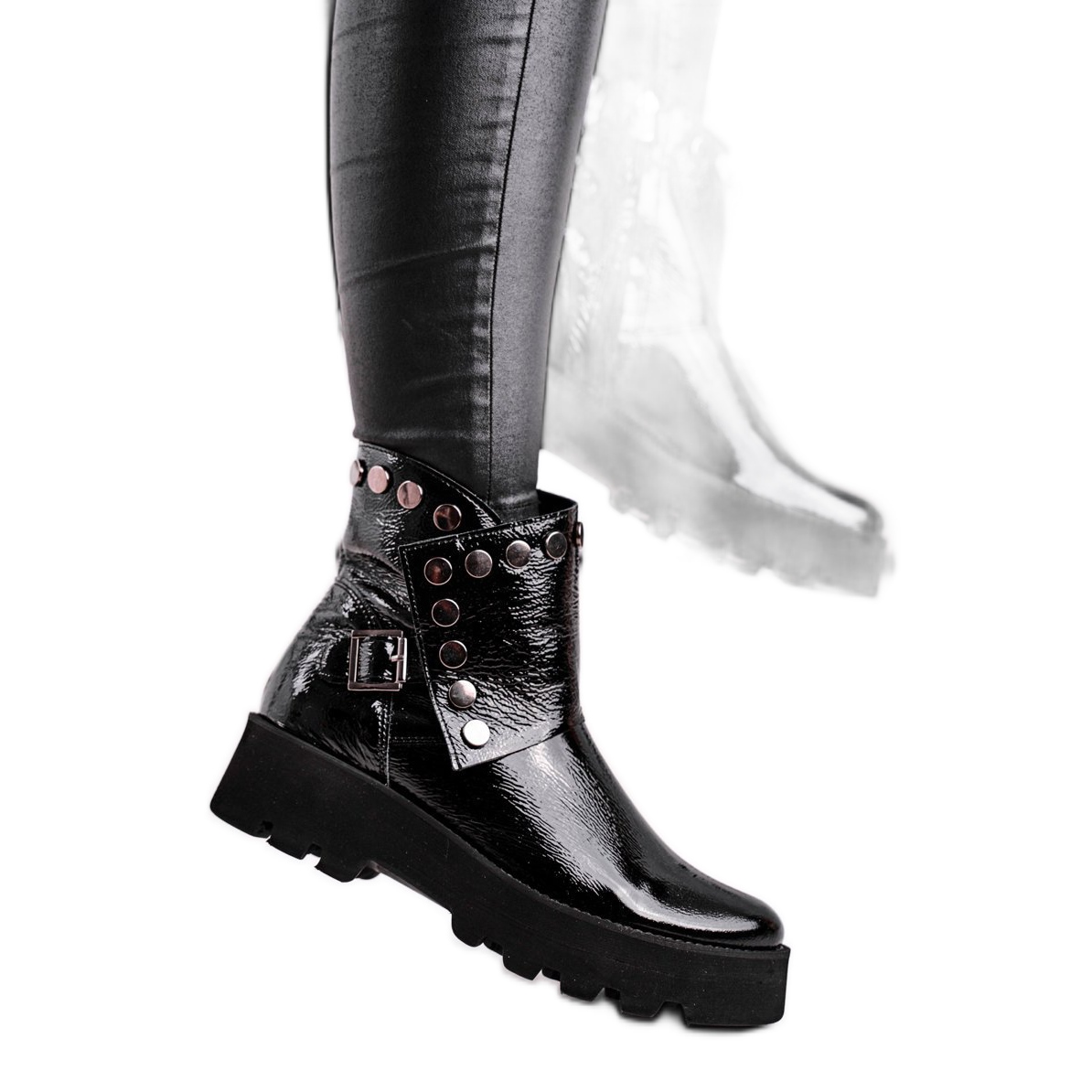 Tenga en cuenta que la numeración es exagerada, por lo que sugerimos elegir una talla más pequeña. Las Botas de Mujer de Charol Negro Exquisitas 1199 son la elección perfecta para las mujeres que valoran la combinación de elegancia y comodidad. El embalaje original del fabricante en forma de caja los convierte en una idea de regalo perfecta.