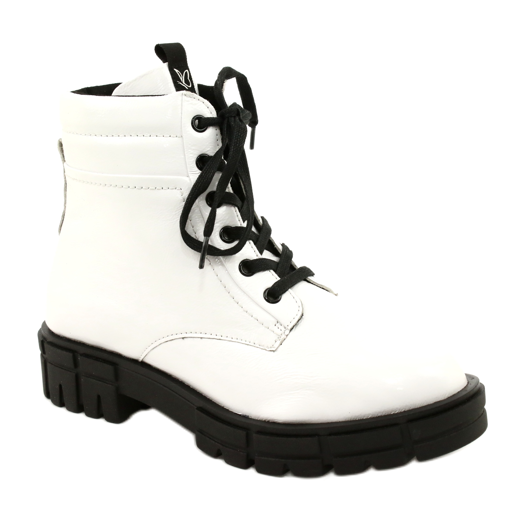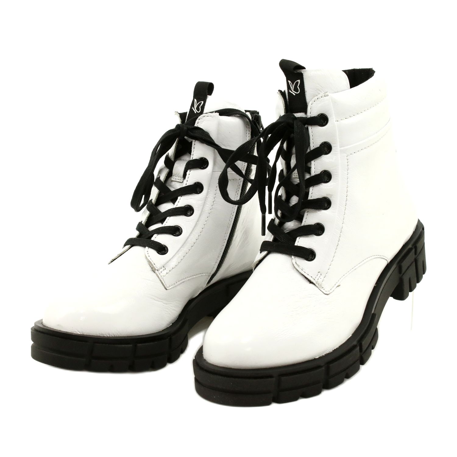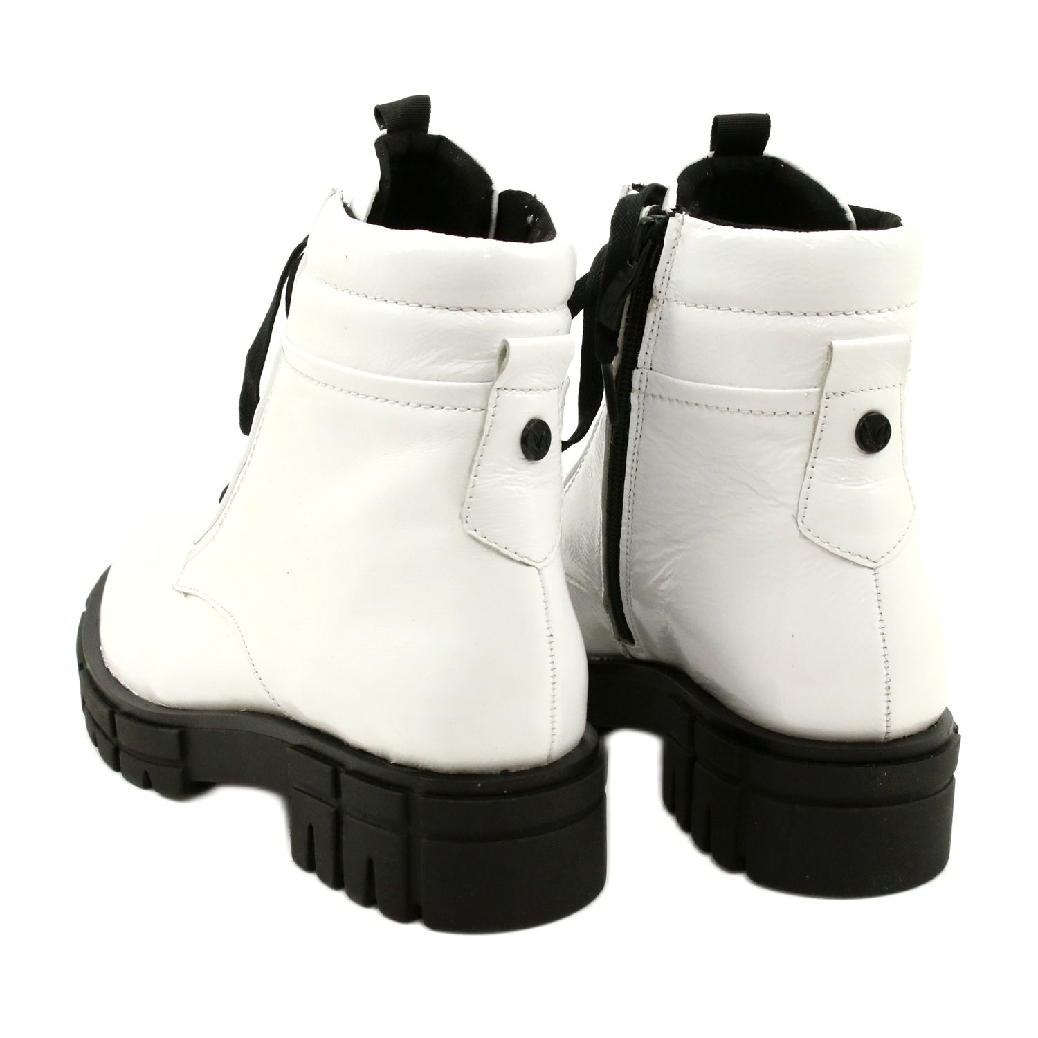 Botas de capricho de mujeres elegantes y barnizadas en Nadlak blanco combinan un aspecto de moda y brillante con soluciones prácticas, que apreciará especialmente en los días más frescos. El modelo está hecho completamente de cuero natural, aislado con piel suave, la elección perfecta para las estilizaciones urbanas cuando necesita calidez y comodidad sin renunciar a la elegancia.
