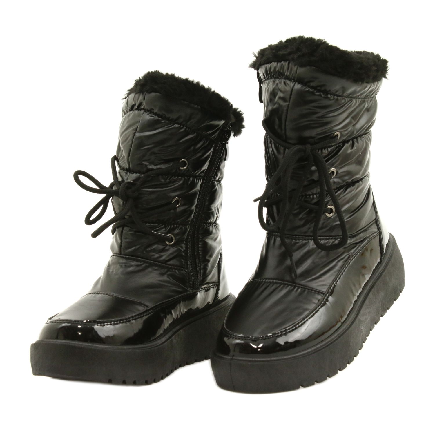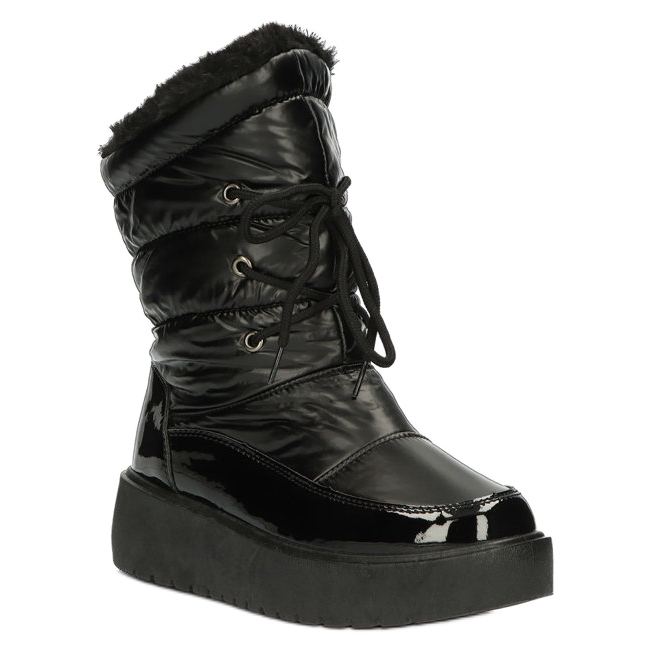 Te presentamos las botas de nieve con cordones Filippo DBT3403 negras, que son la elección perfecta para los días de invierno. Estas elegantes botas se distinguen por un acabado preciso en charol ecológico, que garantiza no solo una apariencia única, sino también durabilidad.