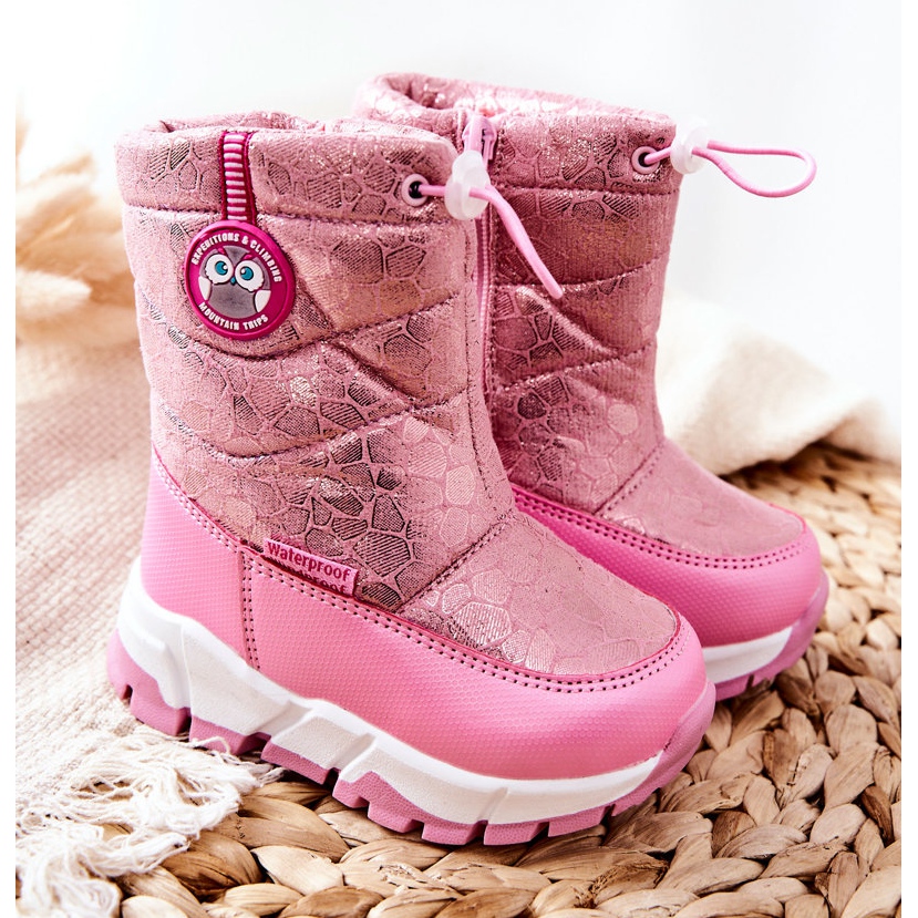 Te presentamos las botas de nieve infantiles PJ2 en color rosa, ¡perfectas para los días helados! Estos zapatos con aislamiento fueron diseñados pensando en la comodidad y funcionalidad de los niños. El interior de las botas de nieve está forrado con suave piel de oveja, que protege eficazmente del frío y es agradable al tacto.