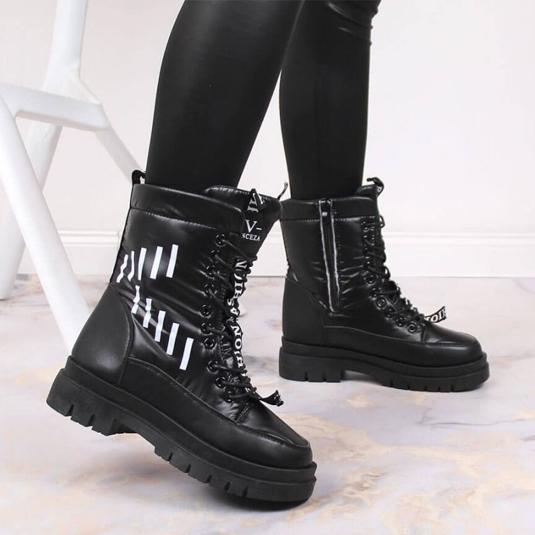Detalles: Botas de nieve con cordones en la plataforma Vinceza W JAN167 negro