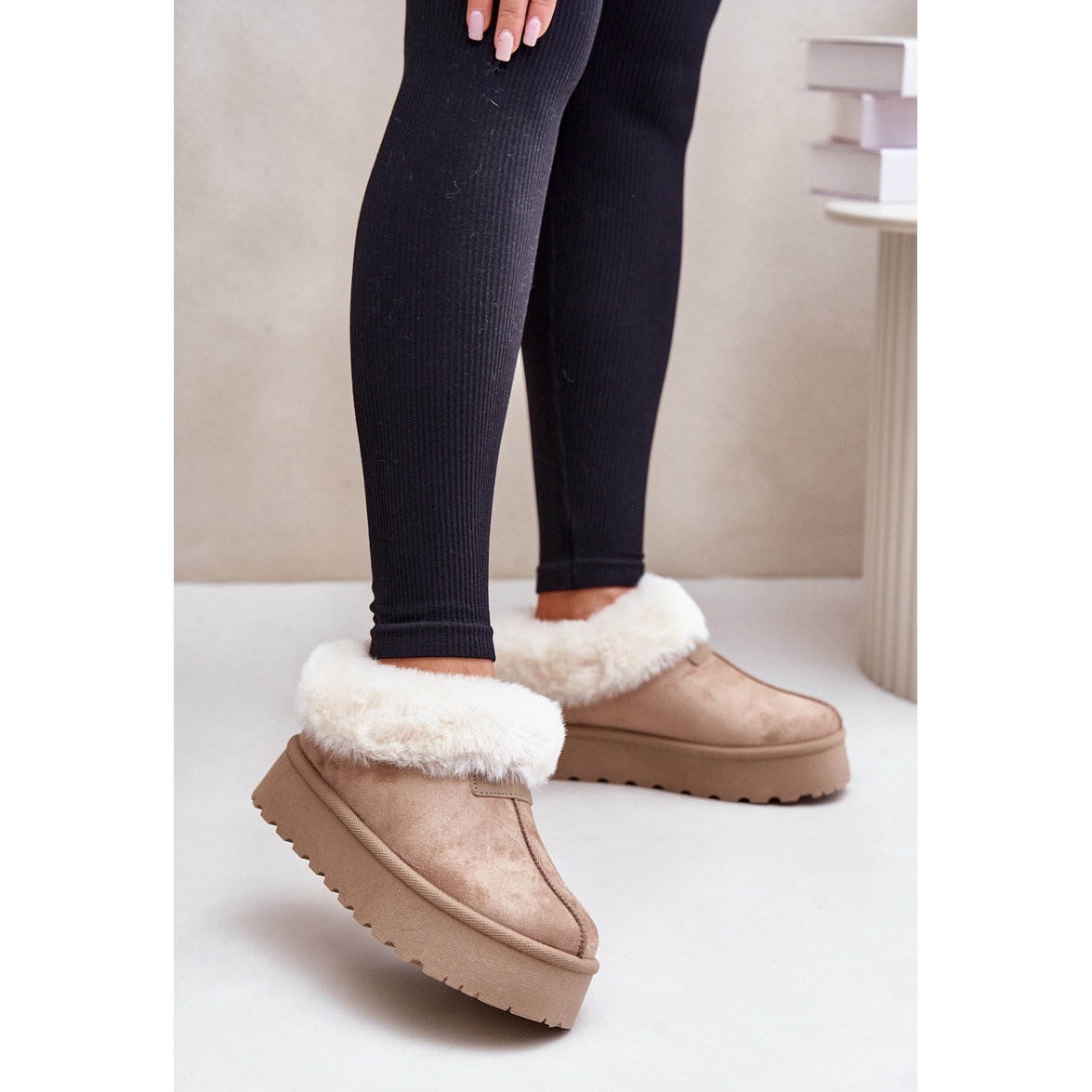 Gracias a la inserción, ponerse y quitarse estos zapatos es rápido y cómodo. El color beige, tanto el material externo como las suelas, hace que las botas de nieve coincidan perfectamente con muchas estilizaciones de invierno.