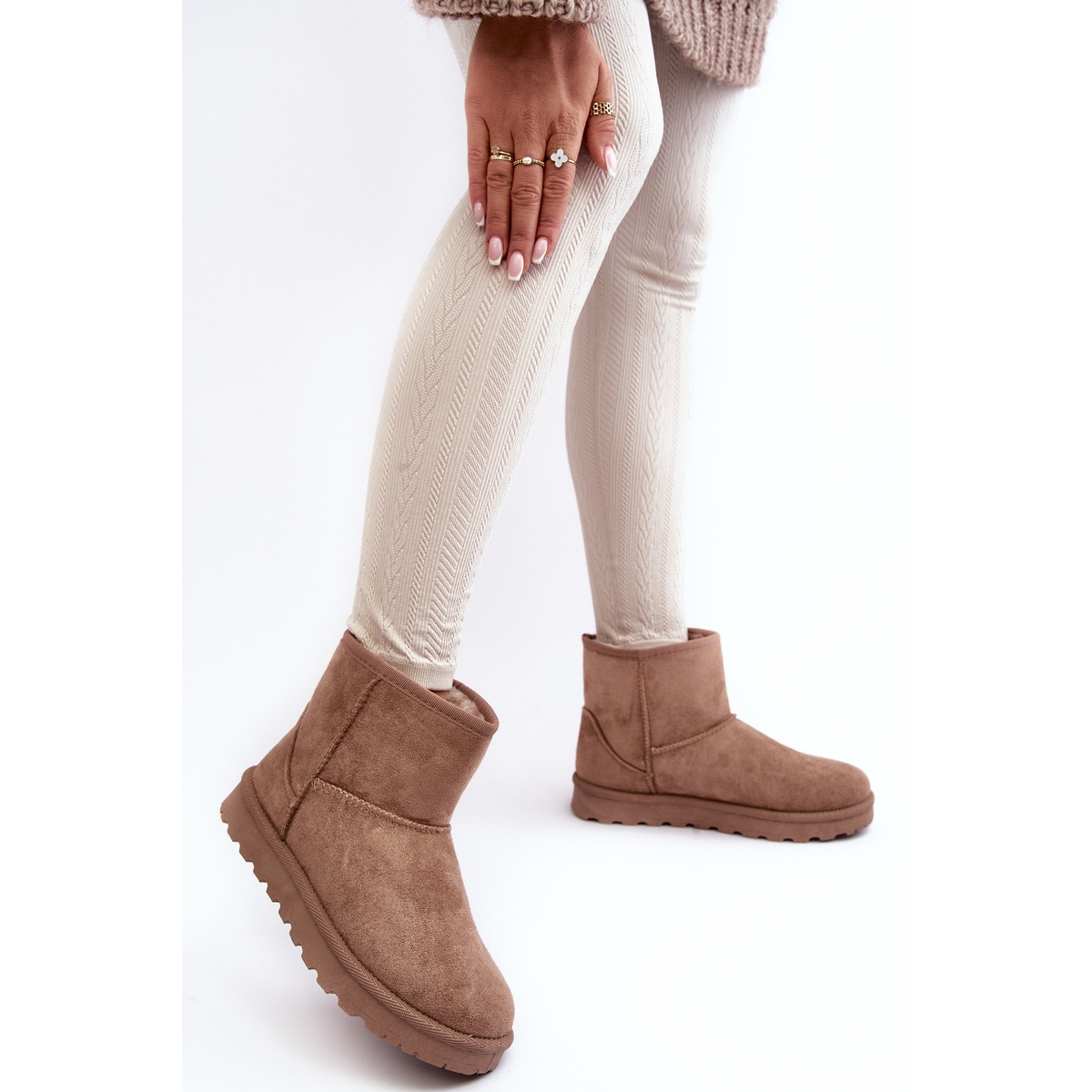 Estas botas de nieve beige para mujer son un calzado elegante y funcional para los meses de invierno. Están confeccionados en ante ecológico, que combina elegancia y cuidado del medio ambiente. La suela del calzado es de caucho, lo que asegura una mayor durabilidad y resistencia a diversas condiciones climáticas.