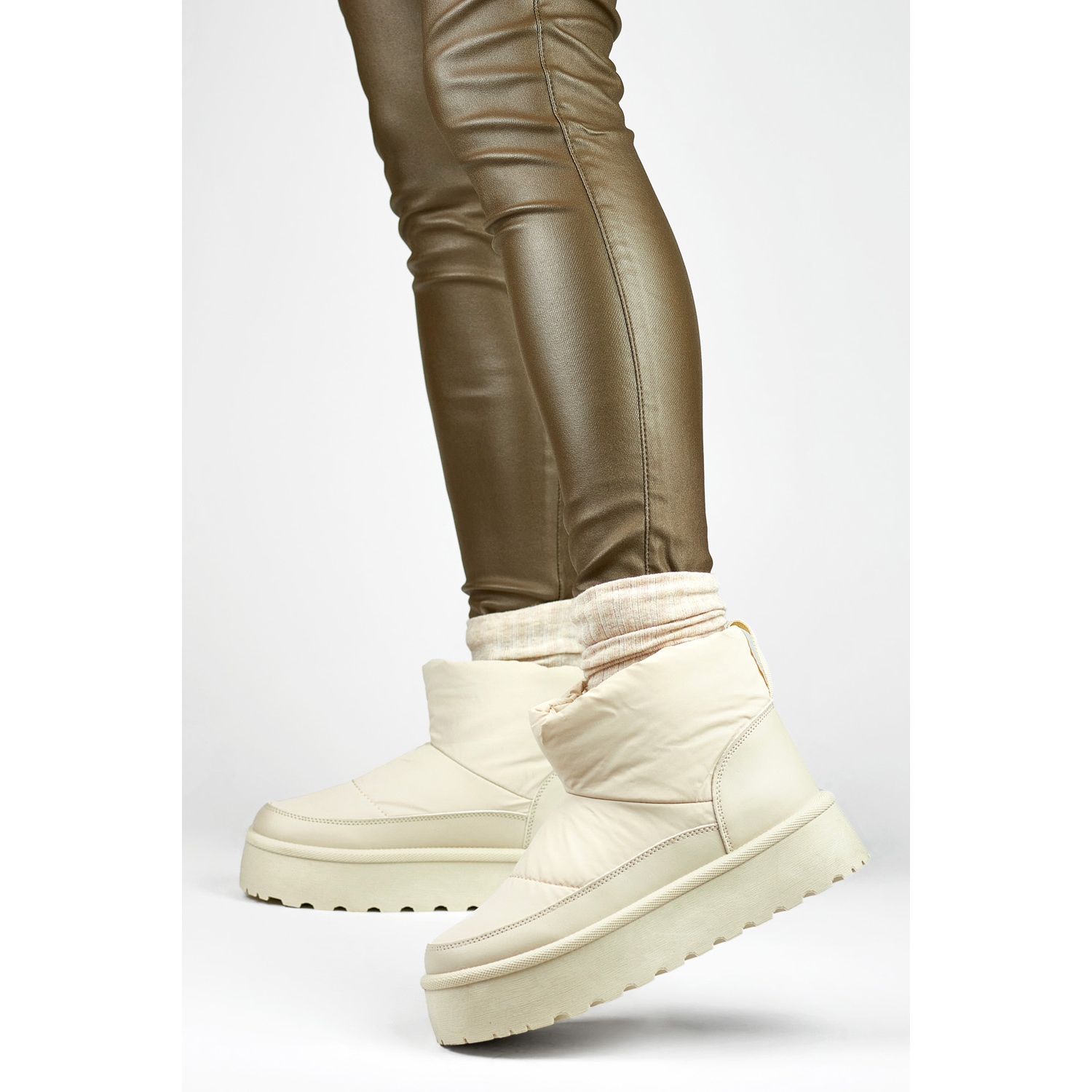Detalles: Botas de nieve de invierno de mujer beige con plataforma.