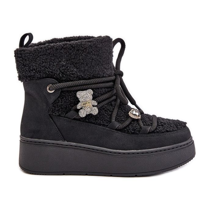 Detalles: Botas de nieve de mujer Almatiza negras con pasadores y pelo negro