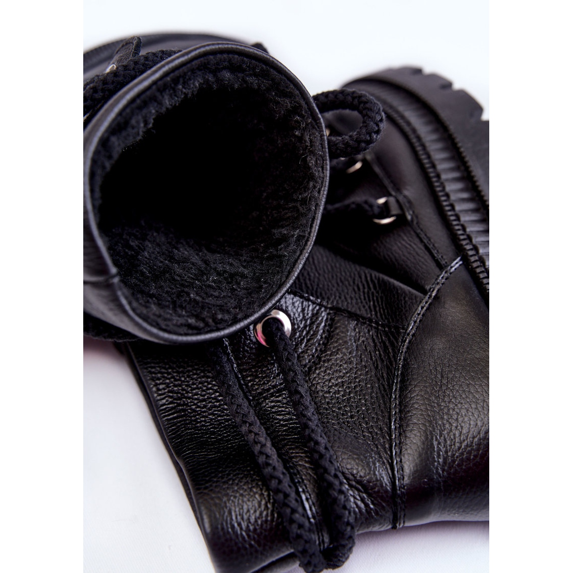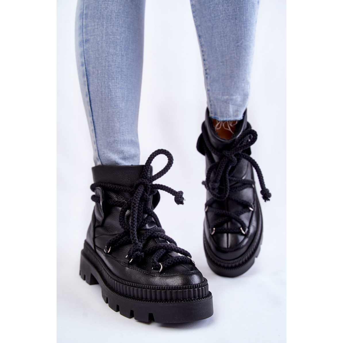 Genial, las botas de nieve para mujer están hechas de cuero de alta calidad. El modelo tiene cordones gruesos y sólidos. Las botas están montadas sobre un tacón plano y una plataforma con ranuras. Las botas para la nieve tienen aislamiento de piel y un talón rígido. ¡Este modelo sin duda será útil para todos los amantes del calzado cálido y cómodo! Al elegir una talla, utilice la tabla de tallas.