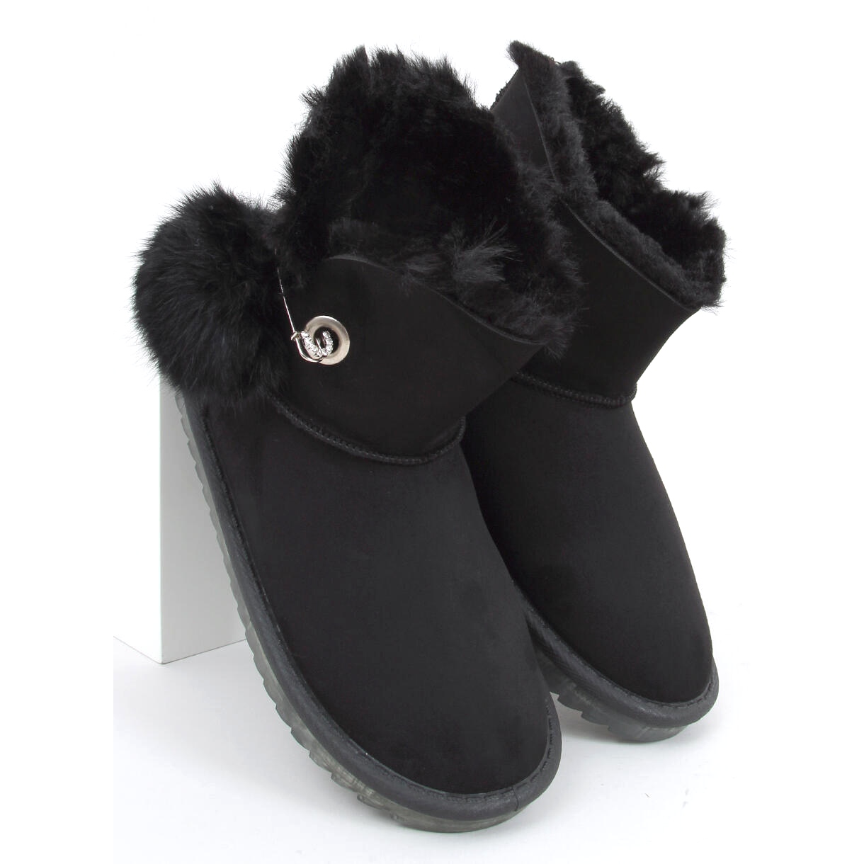 ¿Está buscando zapatos cómodos y cálidos para los días fríos? Las mujeres negras de las mujeres son una combinación de apariencia clásica y soluciones prácticas. La parte superior de gamuza hecha de material ecológico y una piel suave en el interior proporcionan un comodidad térmica, y un pasador de seguridad decorativo con pompón agrega encanto y un acento de moda.