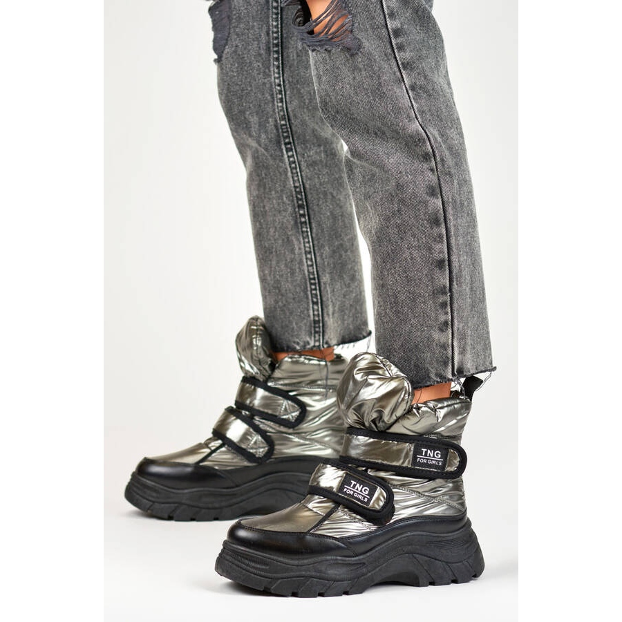 Presentamos botas de nieve para mujeres de moda y cómodas, botas de cierre adhesivo metálicas, modelo 22-PY16062i en plata y negro. Estos zapatos únicos son una excelente opción para la temporada de otoño/invierno, combinando tanto estilo como funcionalidad.