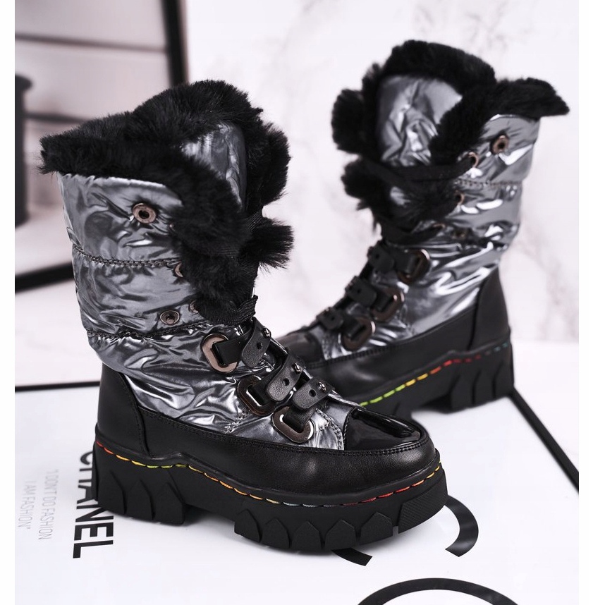Las botas de nieve para niños Apawwa con aislamiento de pelo, Turismo negro y gris, ¡son una opción perfecta para las aventuras invernales! La parte superior alta proporciona no sólo una comodidad excepcional, sino también una protección eficaz contra el frío. Gracias al grueso pelaje del interior, los pies de tu hijo se mantendrán calientes incluso en los días más fríos.
