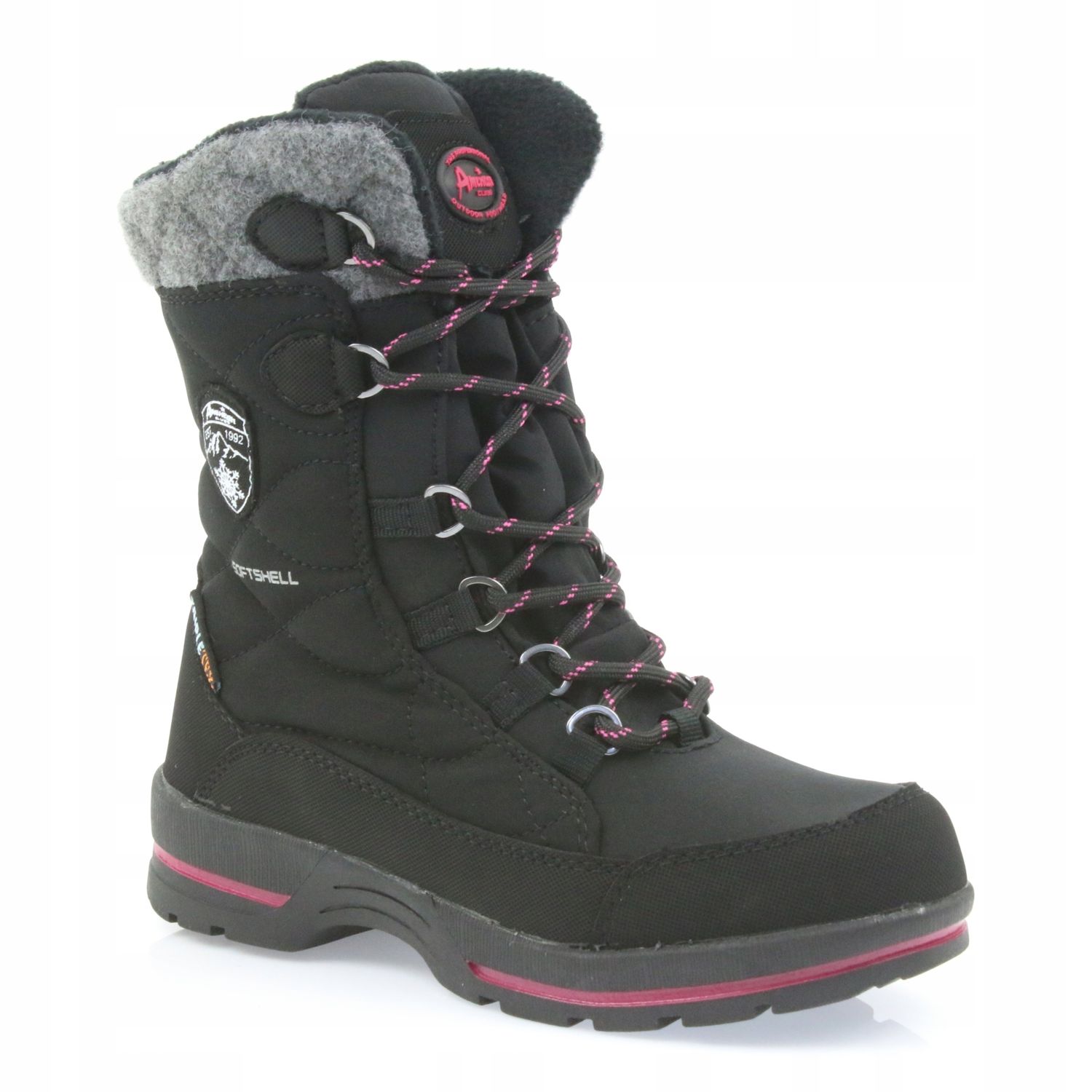 Detalles: American Club Botas de nieve softshell negras con membrana American SN19 / 20 negro rosa gris