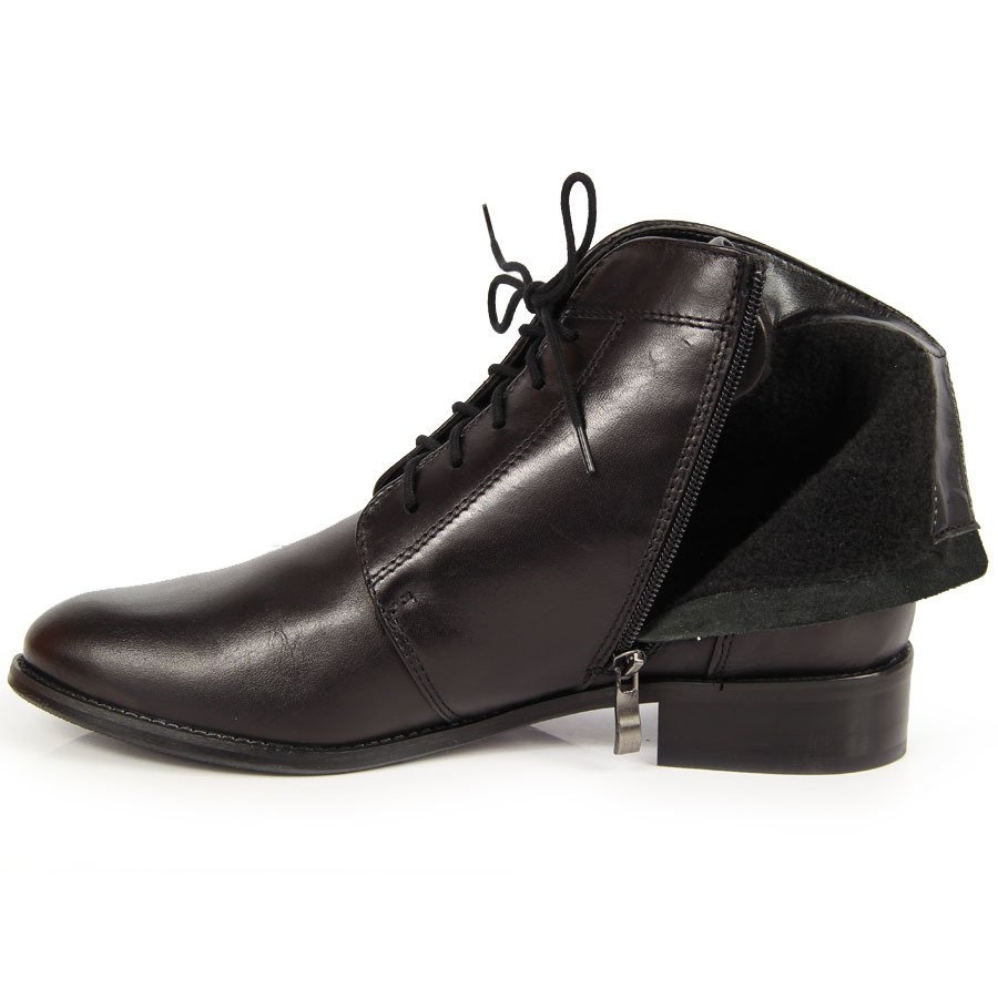 Gracias a la práctica cremallera y a los cordones, estas botas se ajustan fácilmente a la pierna y su punta redonda garantiza la libertad de los dedos. Este modelo tiene un color negro universal, lo que lo convierte en un complemento perfecto para muchos estilos, desde el informal hasta el más elegante.