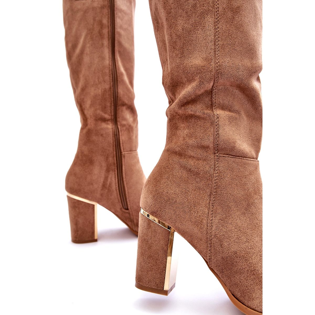 - Modelo: botas frente a la rodilla en el poste de gamuza