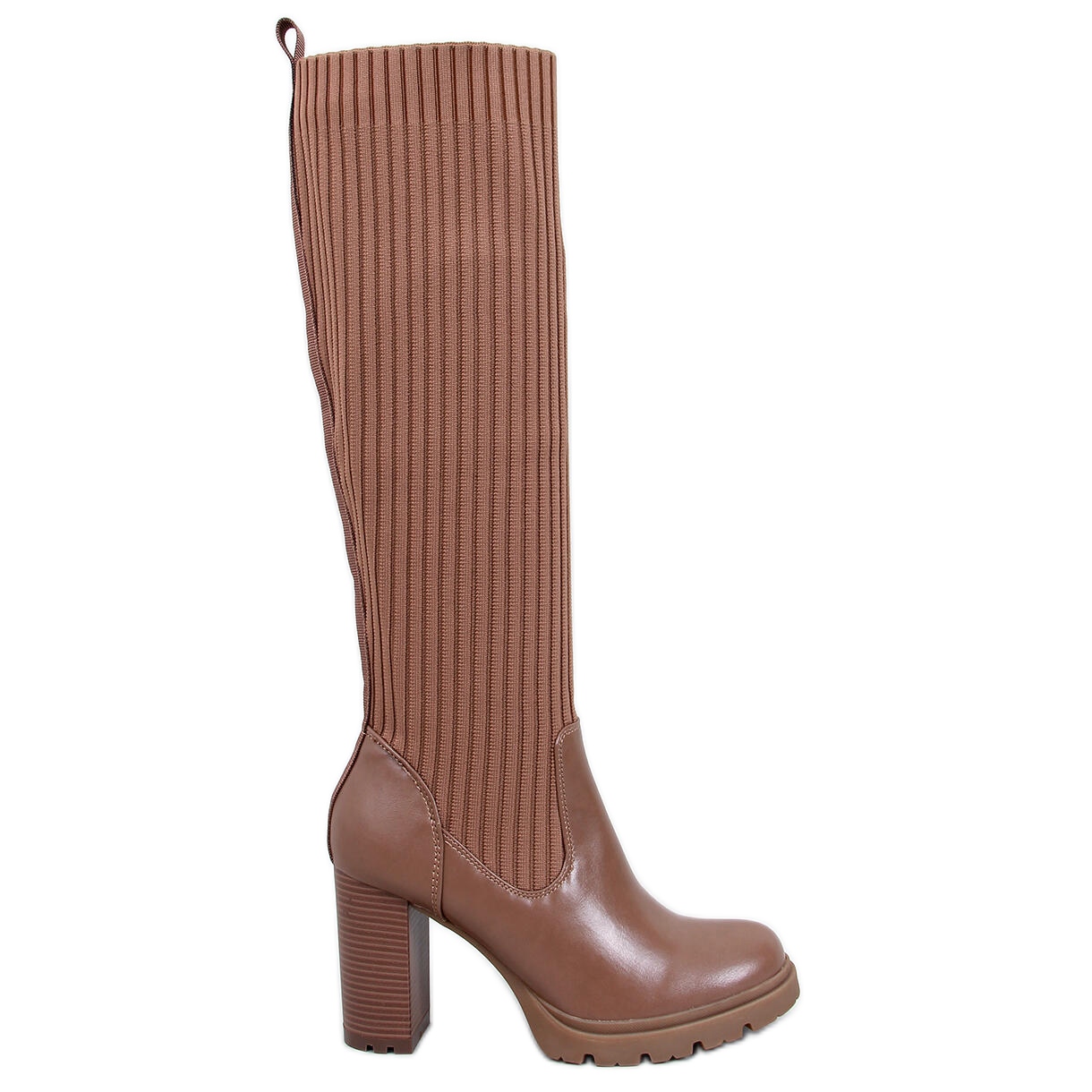 Descubra elegancia y comodidad con botas de talón con una jaida flexible caqui alta marrón. Estas elegantes botas para mujeres, incrustadas con un tacón de 9.5 cm de altura, combinan un corte clásico con un acento moderno. Una apariencia ordenada con dedos redondeados hace que el pie se vea extremadamente atractivo, enfatizando la belleza de cada figura.