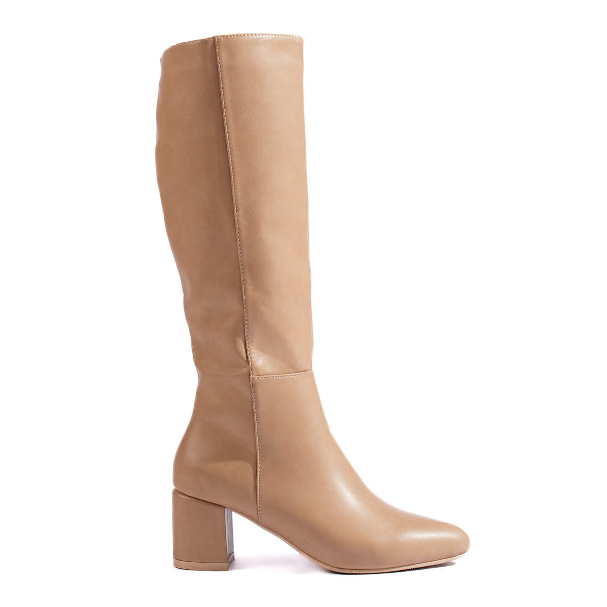 Elegantes botas beige para mujeres Daszyński-perfectas para la temporada de otoño-invierno. Hecho de cuero ecológico, aislado, con una cómoda barra de 6 cm y un bloqueo lateral práctico. Estilo informal con un corte clásico, excelente todos los días, para trabajar y para caminatas.