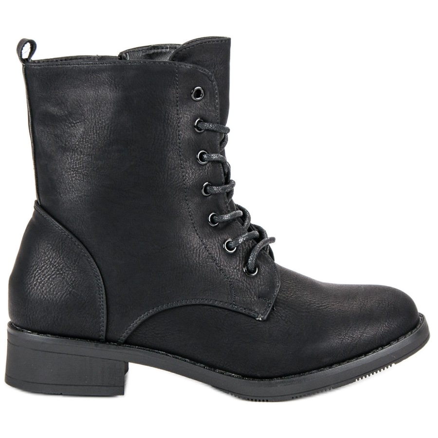 El color negro de estas botas hace que combinen perfectamente con varios estilos, desde el informal hasta el más elegante. El cierre con cordones y una cremallera adicional facilitan su calce, garantizando al mismo tiempo un ajuste adecuado al pie. La puntera redonda y el tacón plano con una altura de 3,5 cm añaden comodidad, y el ancho de la parte superior de 26 cm y su altura de 16 cm hacen que las botas no solo sean prácticas, sino también estéticas.