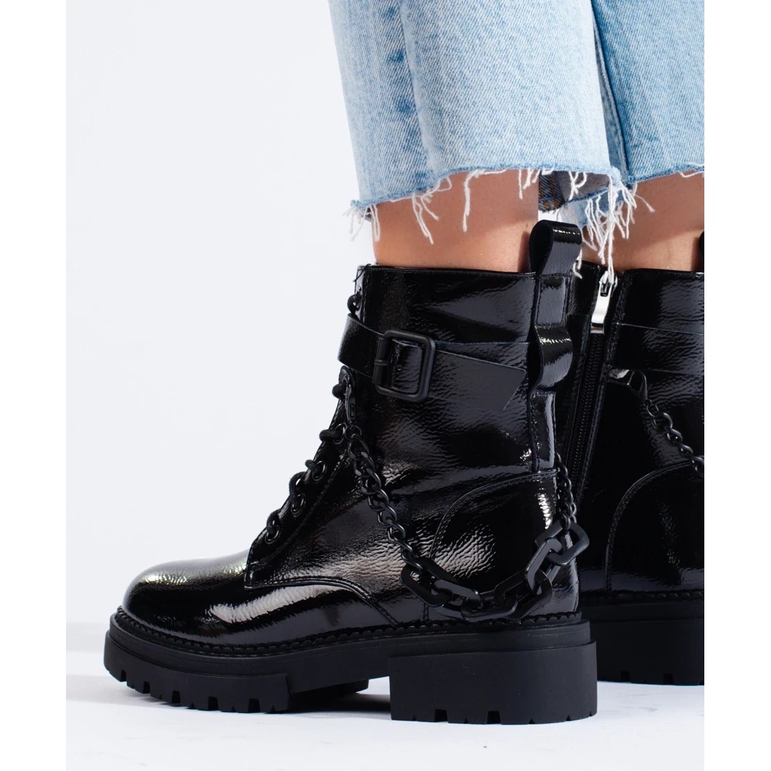 SHELOVET Botas de trabajo lacadas en negro con cadena Shelovet
