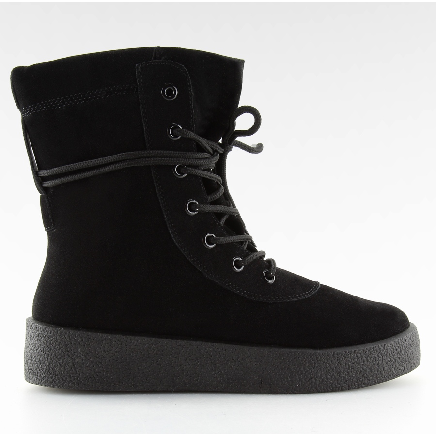 Botas de mujer con cordones con una parte superior alta en un estilo deportivo. La suela sólida y alta aísla perfectamente el frío, por lo que este modelo es ideal para los días más fríos ... Si buscas zapatos todos los días, ¡este modelo seguramente te gustará! Están hechos enteramente de gamuza ecológica, sobre una capa inferior de espuma.