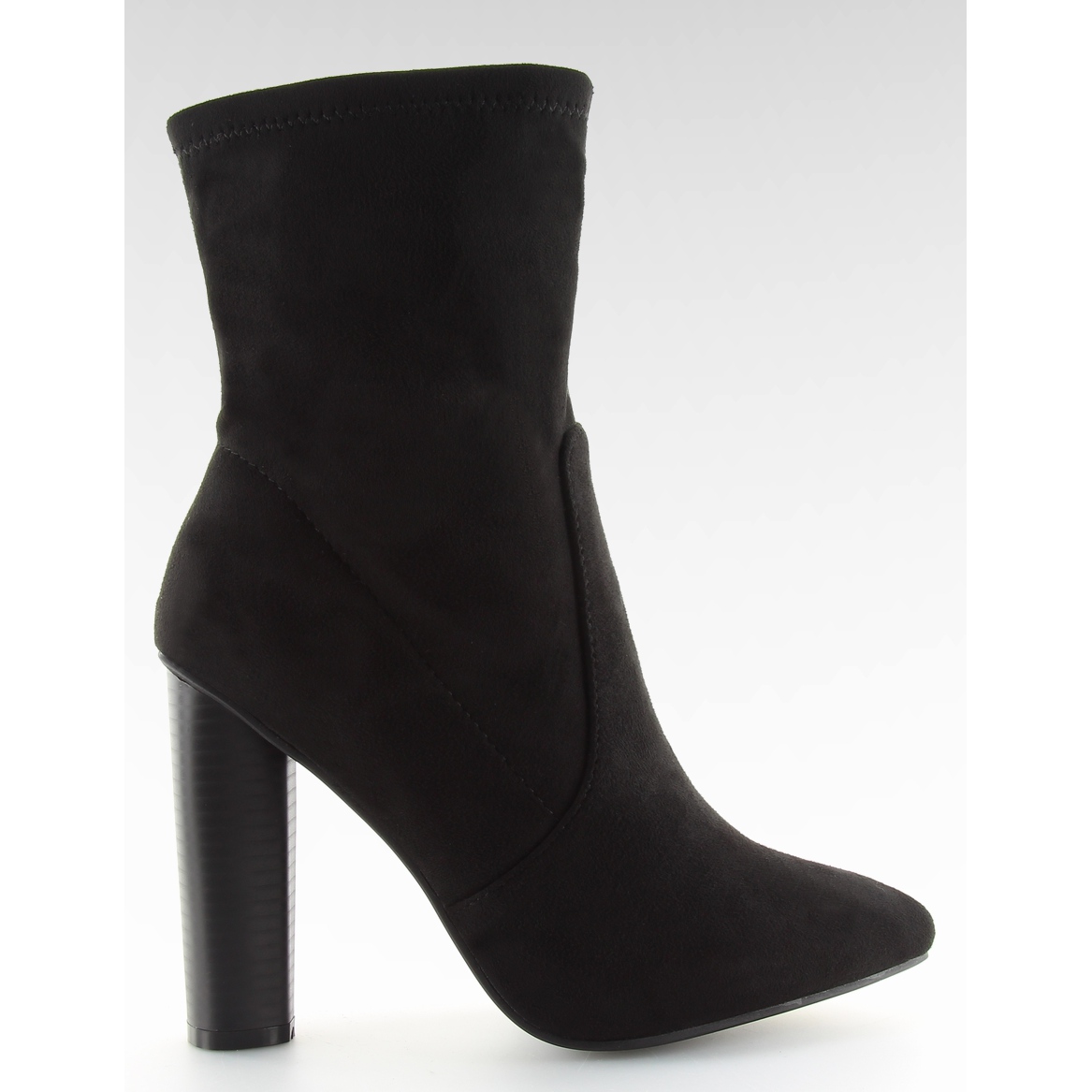 Botas de mujer sobre tacón estable con una altura de 10,5 cm. Tienen narices en una espiga delicada, gracias a las cuales se ven muy bien en la pierna. Ideal para todos los días y para ocasiones especiales. Están hechas de gamuza ecológica, el interior está forrado con un delicado pelaje.