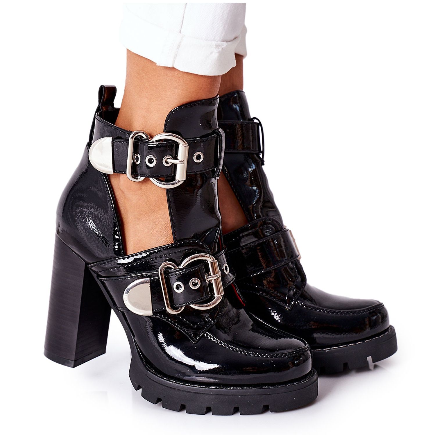 Botines de tacón alto de charol negro con hebilla Bramshall es una opción perfecta para las mujeres que quieren combinar elegancia con comodidad. Estos elegantes botines hechos de charol ecológico se distinguen no solo por su apariencia moderna, sino también por su practicidad.