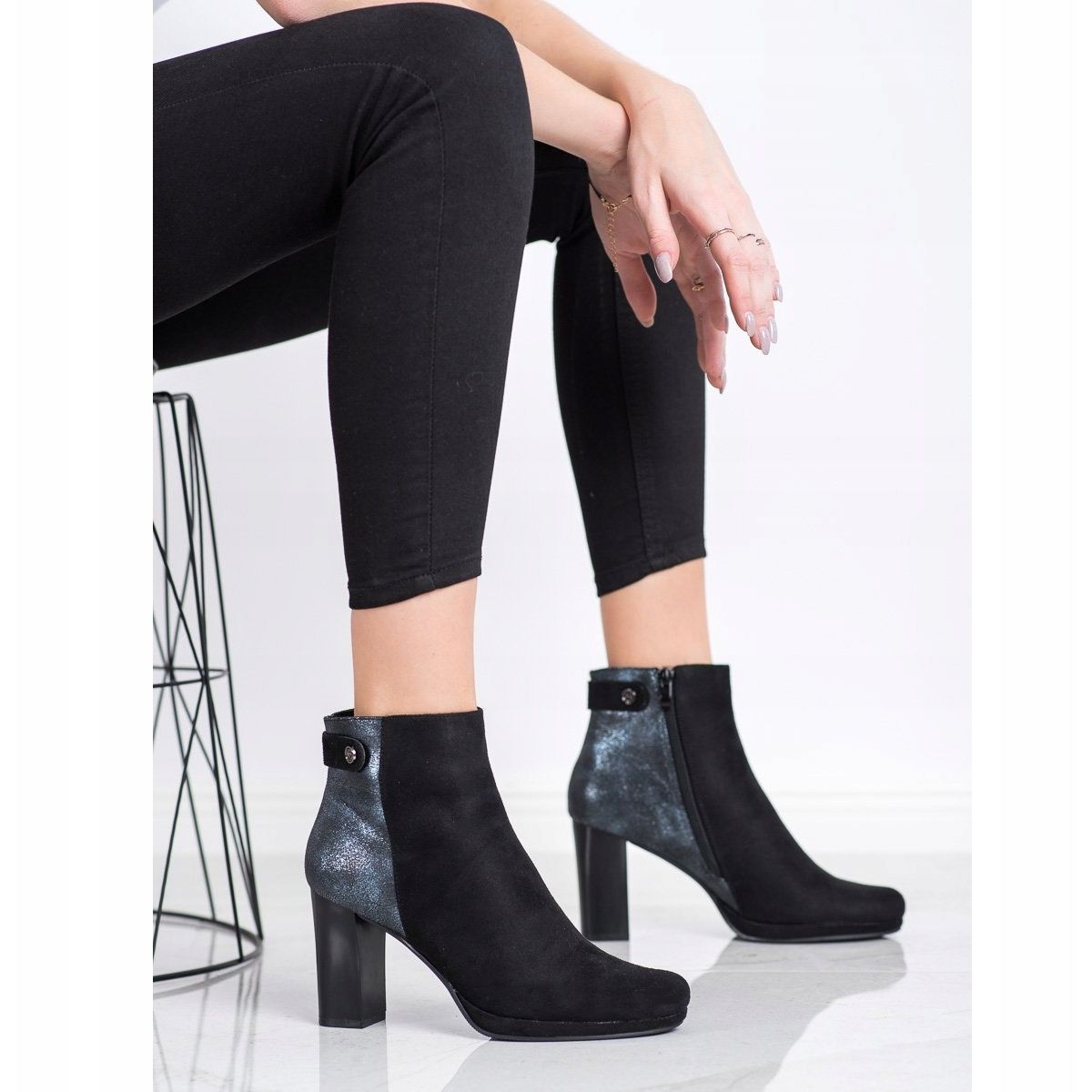 Descubre la elegancia y la comodidad con los botines negros de tacón alto de M.Daszyński. Estos elegantes zapatos de mujer son la elección perfecta para cualquier ocasión, tanto para el día a día como para salidas nocturnas o celebraciones. Gracias a su corte elegante y su acabado en ante sintético, las botas se adaptan perfectamente a las tendencias de moda actuales.