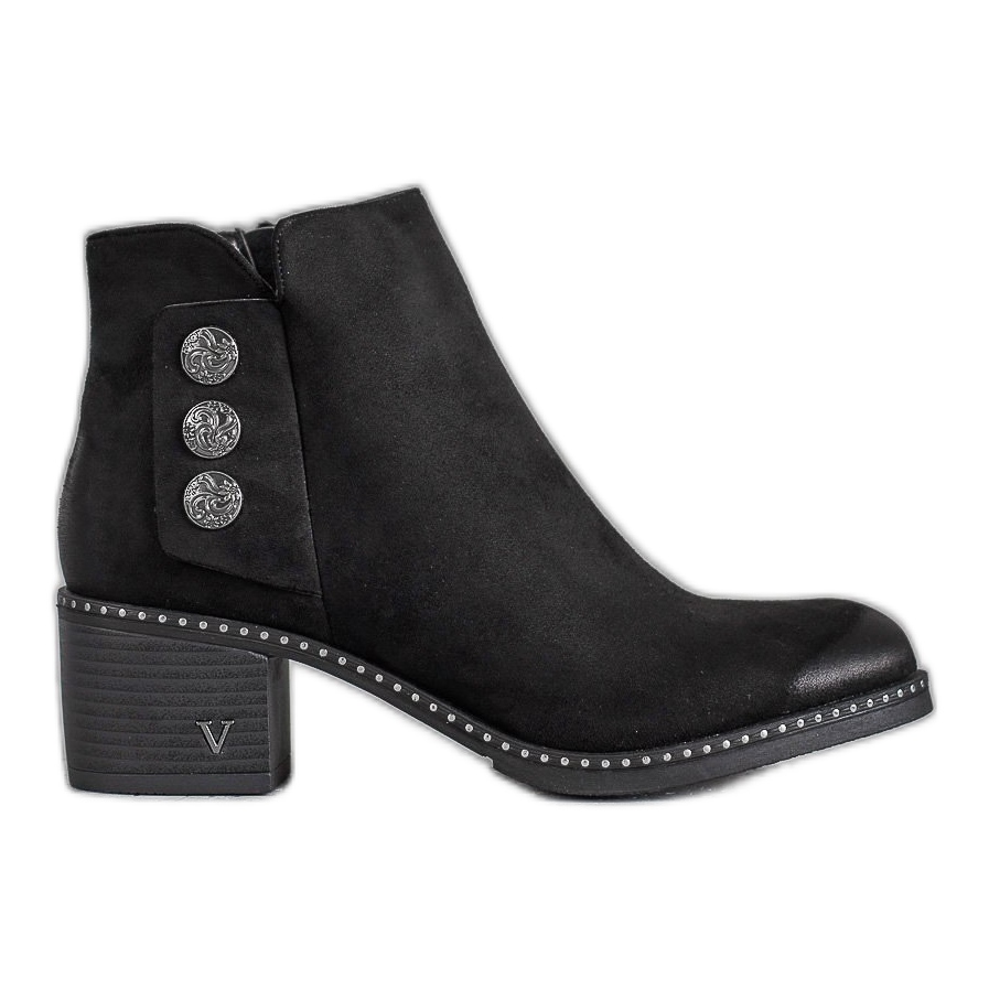Descubre la elegancia y la comodidad con los extraordinarios botines de tacón VINCEZA en un clásico color negro. Estos zapatos de mujer de alta calidad están hechos de un material duradero similar al cuero, lo que garantiza no solo una apariencia elegante, sino también comodidad de uso.