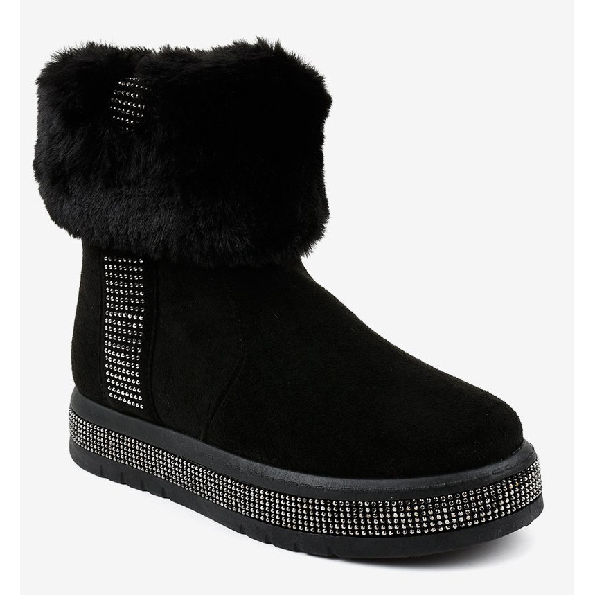 La parte superior de los zapatos llega por encima del tobillo, lo que proporciona protección adicional contra el frío. El interior aislado garantiza calidez y el acogedor ribete de piel añade encanto. Los elementos clave son las pedrería decorativa y la pedrería, que aportan un toque de brillo y originalidad a cada estilismo.