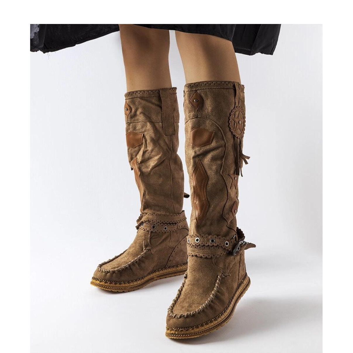 Las botas estilo boho Putignano de color marrón oscuro son una opción perfecta para las personas que valoran la apariencia moderna y la comodidad. Fabricadas en piel ecológica de alta calidad, garantizan durabilidad y fácil limpieza. Su tacón alto aporta elegancia y al mismo tiempo son cómodos de llevar durante mucho tiempo. Las botas tienen un cierre sin cordones, lo que las hace fáciles de poner y quitar. Su diseño clásico pero moderno los hace adecuados para muchos estilos diferentes. Además, cuentan con una cuña que aporta estabilidad y añade unos centímetros de altura. Perfectas para el invierno, estas botas serán una gran adición al guardarropa de cualquier mujer.