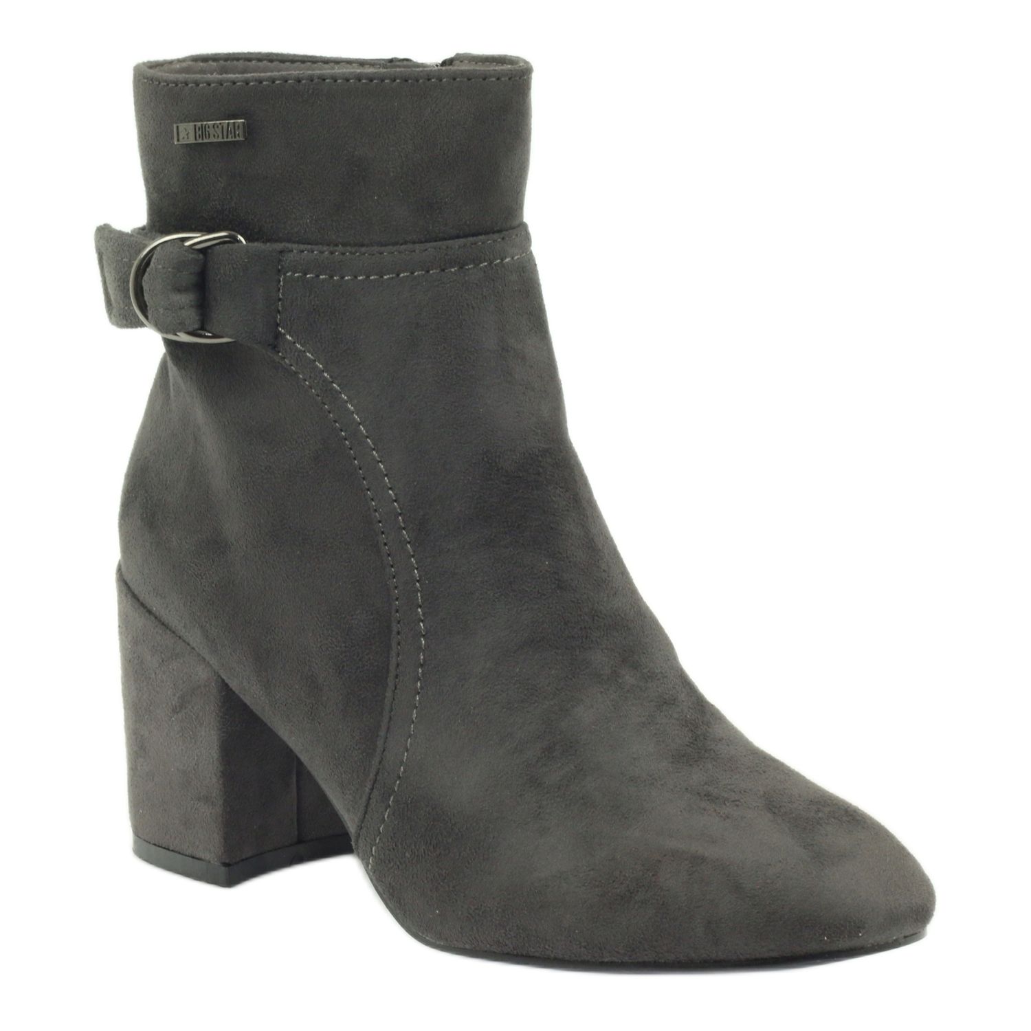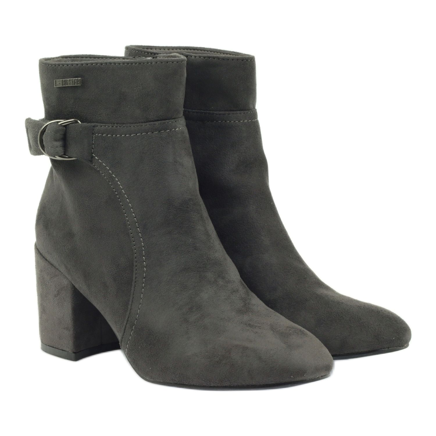 Los botines de tacón Big Star 274538 en color gris son una elección perfecta para la mujer moderna que quiere combinar elegancia con comodidad. Su forma elegante, confeccionada en ante ecológico, los hace no sólo elegantes, sino también respetuosos con el medio ambiente. Estas botas son perfectas para el otoño y principios del invierno y brindan comodidad incluso en los días más fríos gracias al aislamiento especial hecho de delicada espuma en el interior.